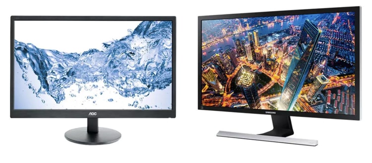 POPULÆRE: AOC 24’’ LEDE2470SWH (t.v.) og Samsung 28’’ UHD Monitor UE570 er begge rimelige alternativer med god ydelse og er blandt de mest populære skærme fra Komplett. FOTO: PRODUSENTEN