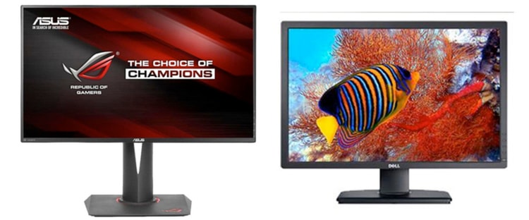 STANDARD: Den mest normale skærmstørrelse i dag ligger på 24 til 27 tommer. Her er Asus 27’’ LED G Sync Rog Swift pg279Q og Dell 24’’ LED Ultrasharp U2412M. FOTO: PRODUSENTEN