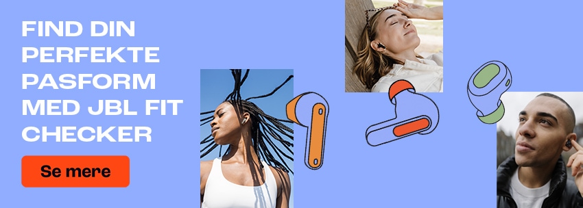Find din perfekte pasform med (NB! Dette link fører dig ud af Komplett.dk) JBL fit checker!