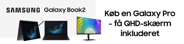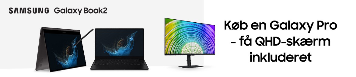 I en begrænset periode sælger vi Samsung Galaxy Book2 hvor du får en skjerm med i købet (Værdi 2.849 kr.). Tilbuddet gælder indtil 25. september, eller så længe lager haves.