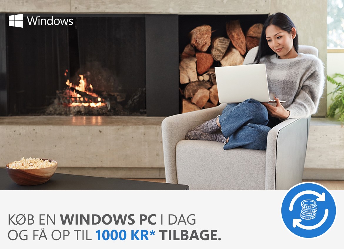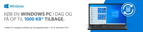 Køber du en ny PC i perioden mellem 2. december og 24. december 2019 kan du få tilbagebetalt op til 1000,- af købesummen fra Microsoft! Tilbuddet gælder kun for privatpersoner.