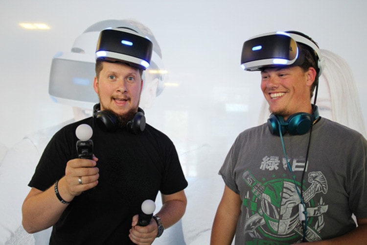 EKSPERT: Espen Harring (t.h) anbefaler voksne at spille sammen med sine børn for at få indblik i hvad slags spil de eksponeres for. Her er han afbilledet med kollega Mikkel Melsom. Foto: VG PARTNERSTUDIO
