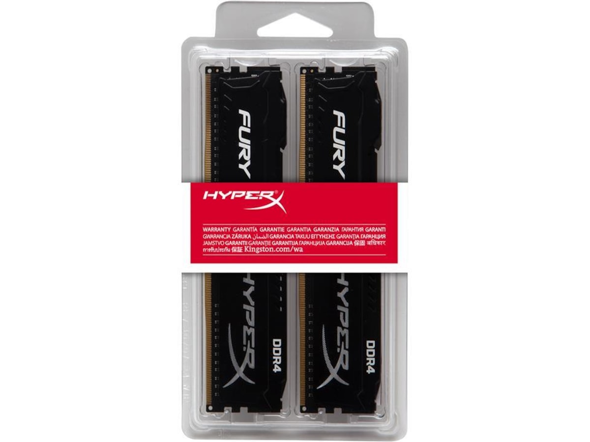 | RAM egenskaber | Dobbeltkanal, Black PCB, Sort køleribbe, Seksten rækker, On-Die Termination (ODT), Intel Extreme Memory Profiles (XMP 2.0), Lavprofils varmespreder, Single rank, FURY asymmetrisk varmespreder |