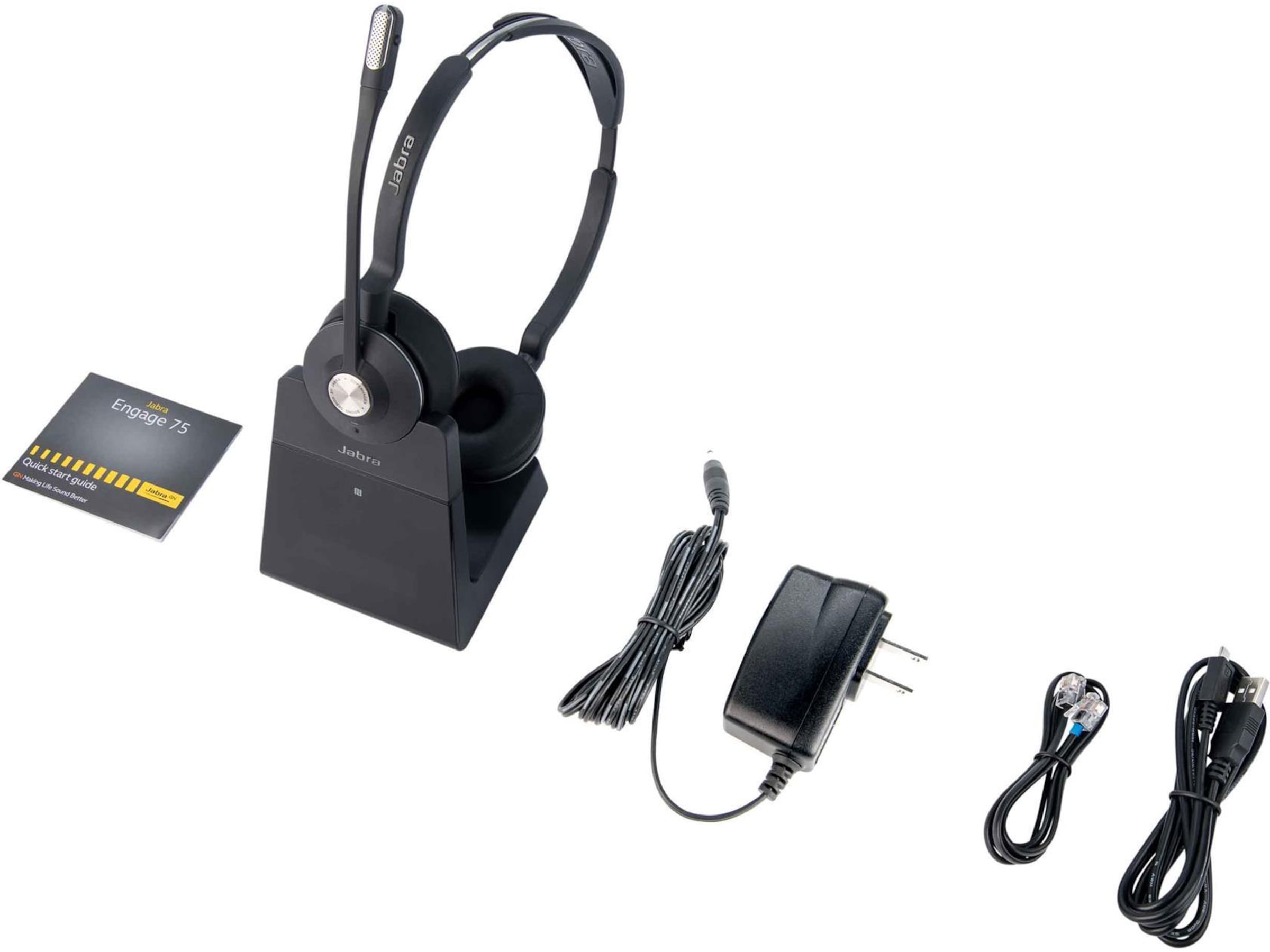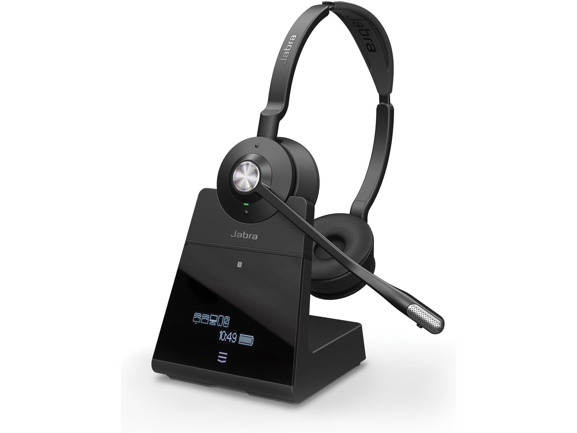 Jabra Engage 75 Stereo er et trådløst headset, der lader dig tilslutte både mobil og fastnettelefon, og softphone på din Mac eller PC.