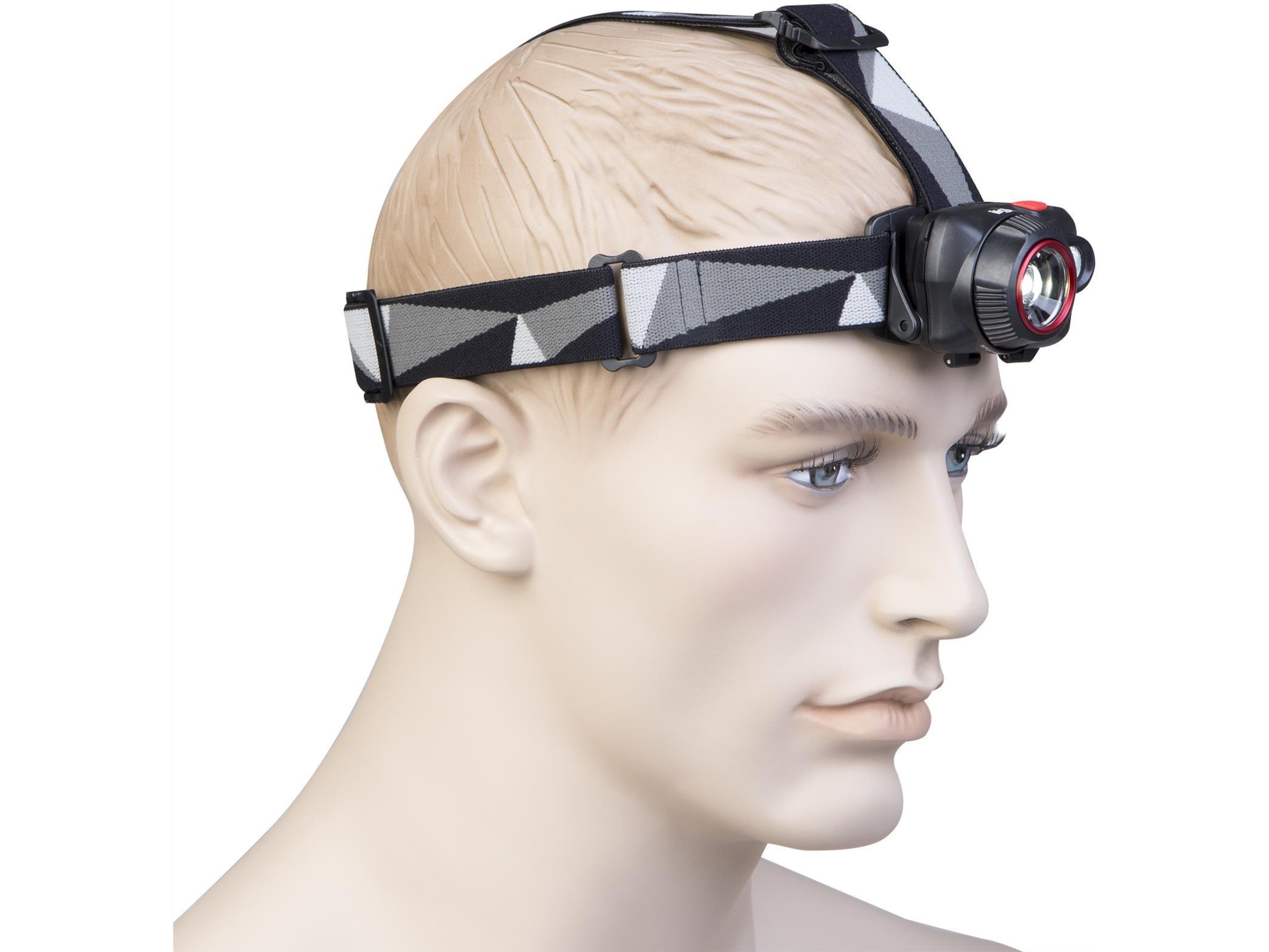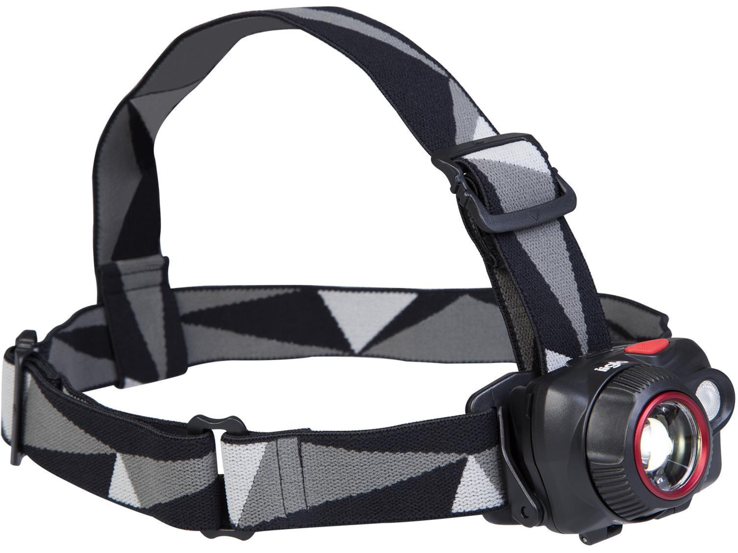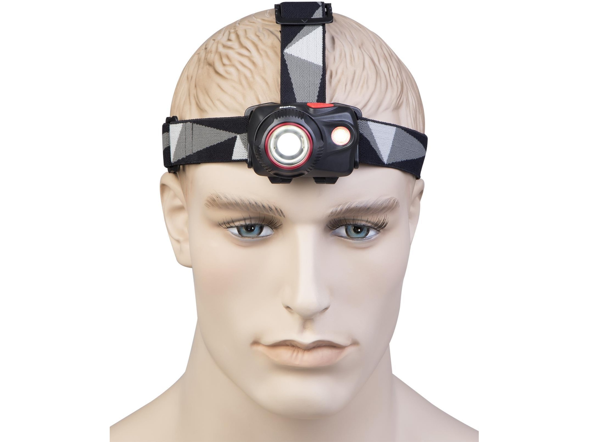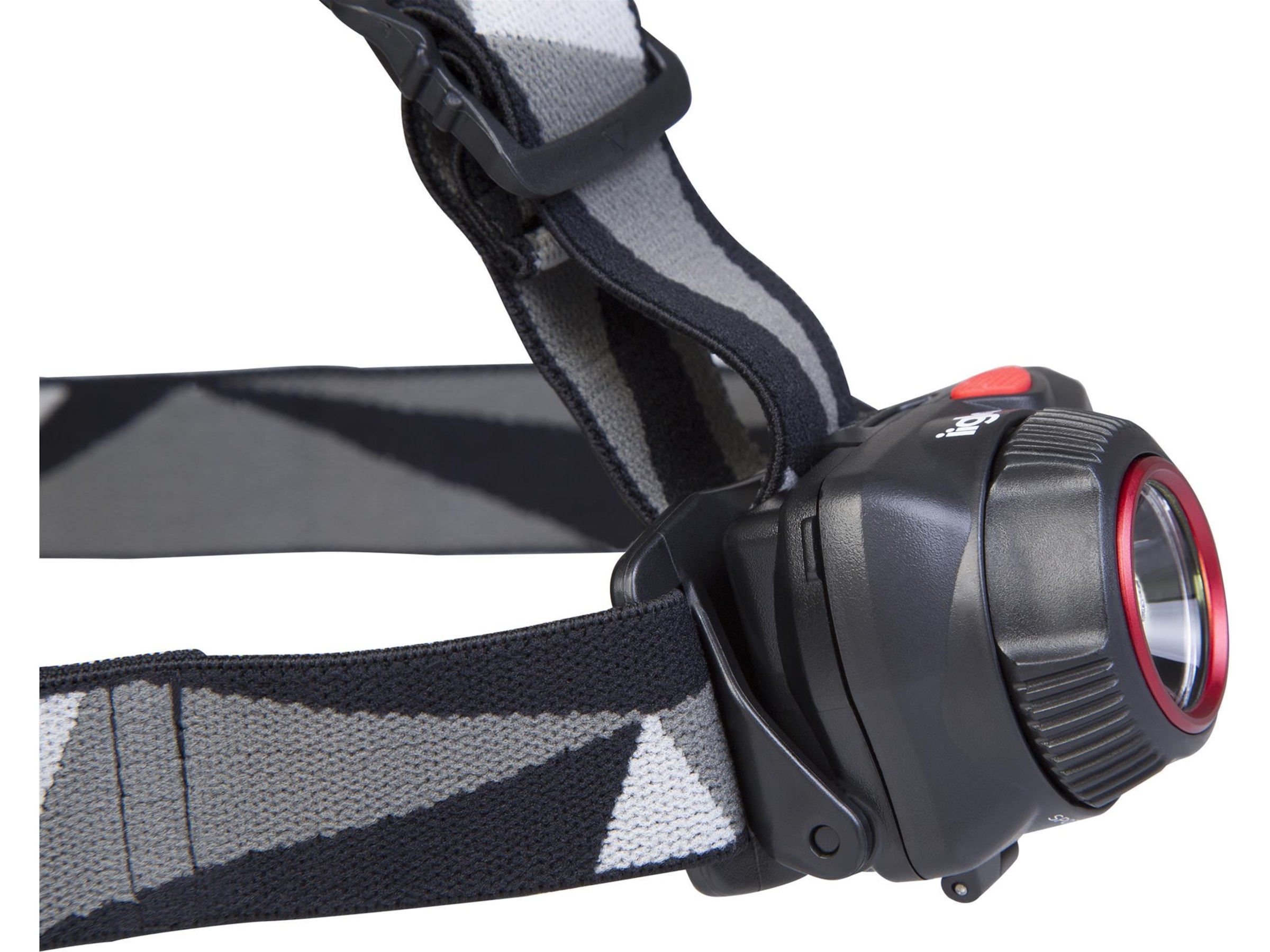 Denne kraftfulde pandelampe har to lyskilder, der tilsammen giver fem forskellige lystilstande, der dækker alles behov. Tre forskellige lys-tilstande i hvidt lys fra frontlyspæren og to ekstra tilstande fra 0,5 W Nichia Rød LED-pære. Frontlyspæren har en linse, der giver et ensartet og klart lys, og ved at dreje ringen omkring linsen justerer du let lyskeglens fokus fra smalt til bredt. Ved maksimal styrke har lygten en rækkevidde på 150 meter. Med gratis projektionsvinklen justerer du enkelt lampens retning og vinkel.
