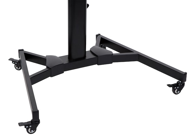 På trods af den færdige størrelse er TV-trolleyen overraskende let at montere. Fladskærmens højde kan justeres. Dette gør du let med et håndsving. Du kan nemt komme til kablerne bag på dit tv, og de skjules i hule monteringsrør. Det sparer unødvendigt kabelrod ved flytning af vognen. Fladskærms højde kan justeres. Det gør du nemt med et håndsving. Trolleyen står på et fast underlag med låsbare hjul.