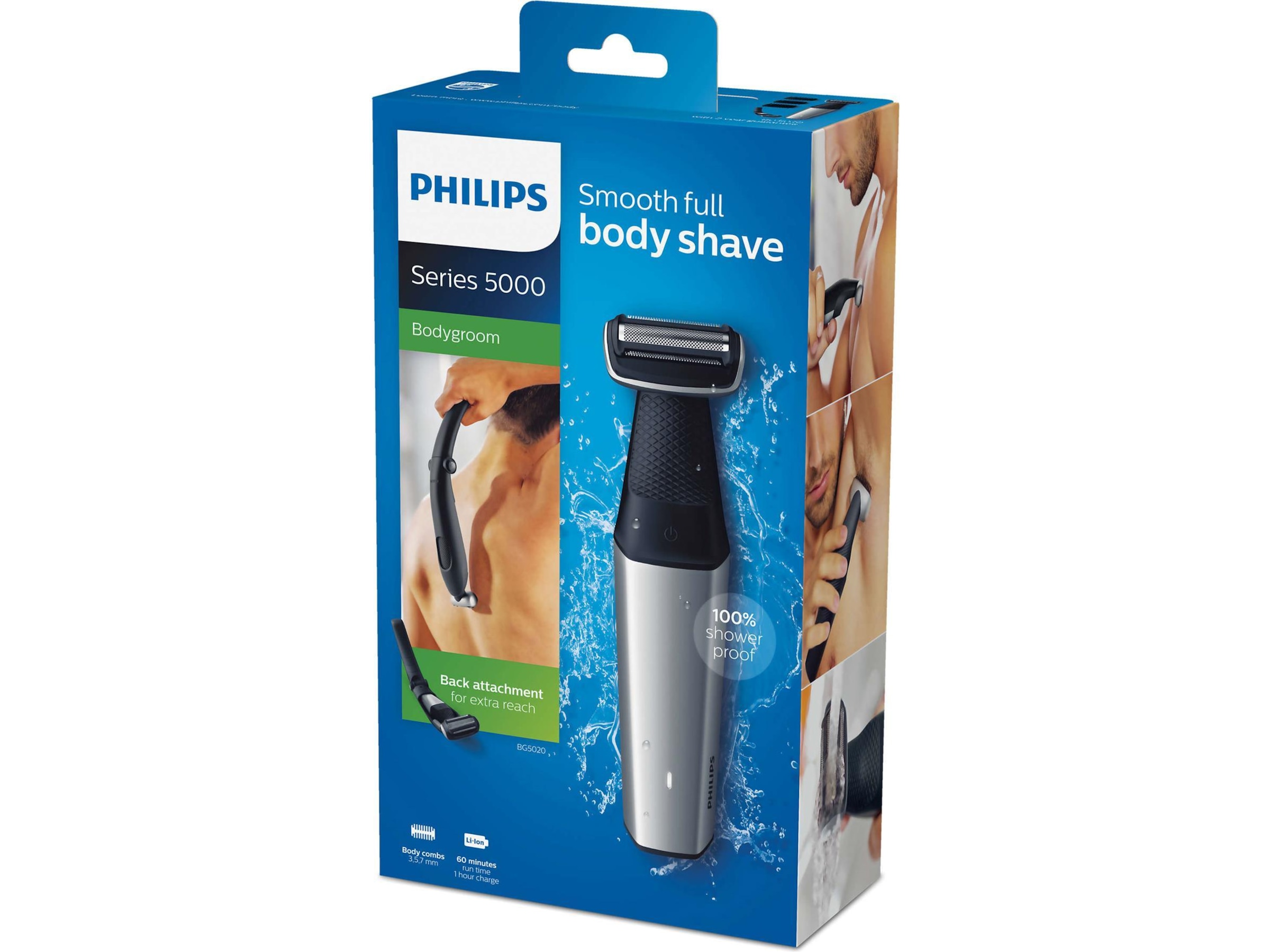 Med Philips BG5020 kan du seæv barbere din ryg med det ekstra lange bagtilbehør som er inkluderet. Du kan også let barbere endnu længere nede på ryggen, uden besvær!