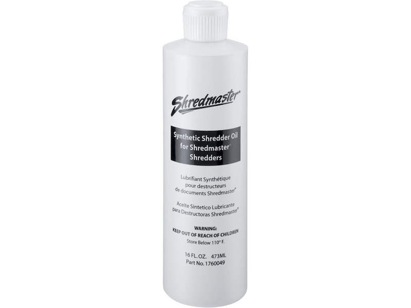 Vår ikke-brændbare makuleringsolie sikrer problemfri brug. Praktisk trykflaske gør det enkelt at påføre olie på skærebladene. Hvis maskinen ikke har automatisk påfyldning af olie, bør der påføres olie, når beholderen tømmes for at sikre et godt vedligehold på makuleringsmaskinen.
