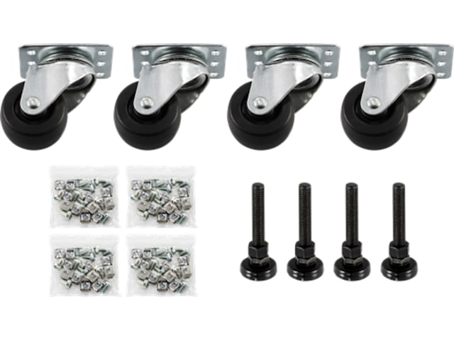 Hjul, korgmuttrar med skruv, nycklar och monteringsverktyg ingår.
