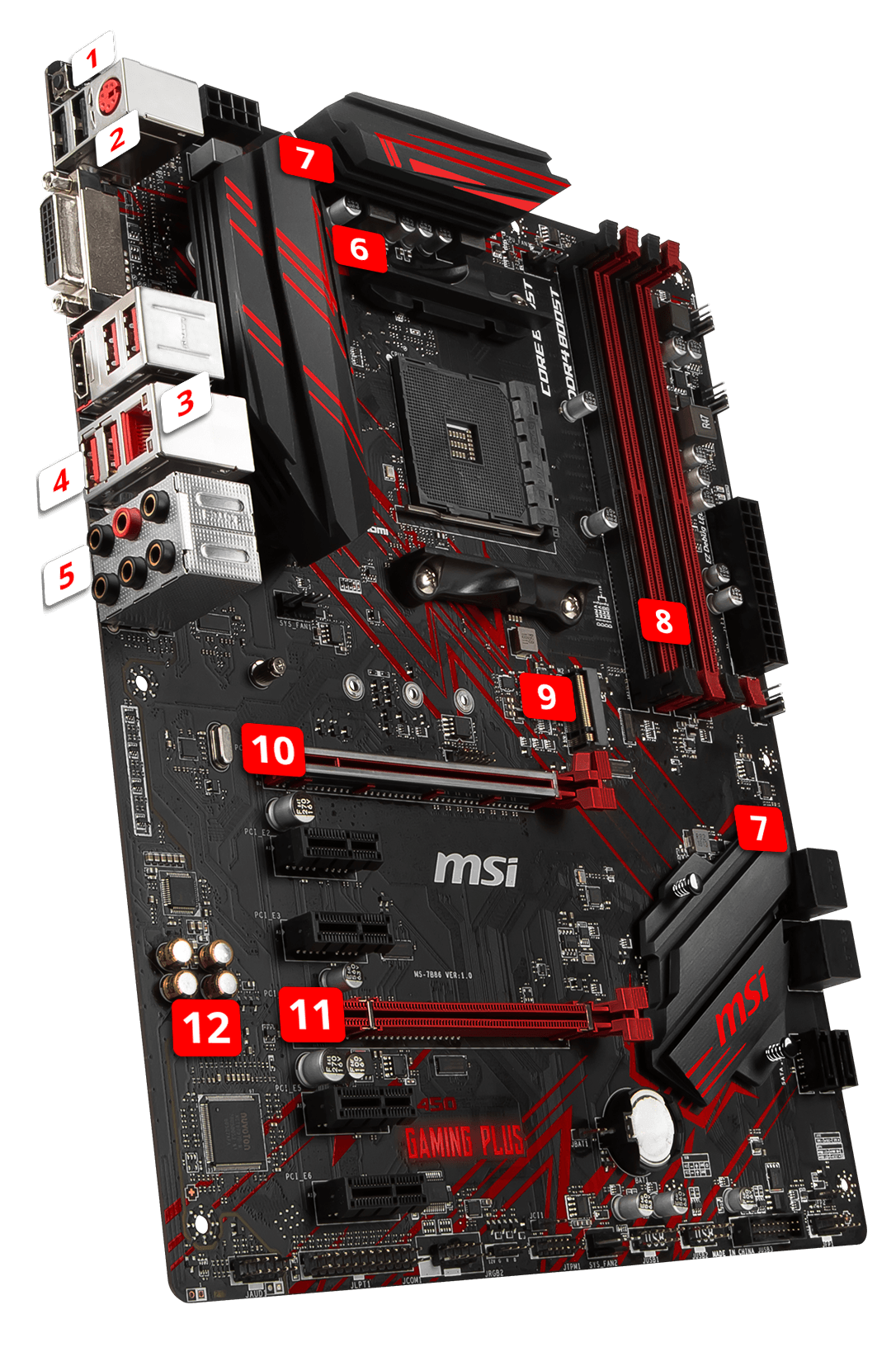 | Hardware egenskaber | Debug LED, MSI Core Boost, Nahimic 3 Sound Technology, MSI Audio Boost, Game Boost, MSI Steel Armor, MSI PCIe Steel Slot, MSI Mystic Light, AMD CrossFireX-teknologisupport, Turbo M.2 |