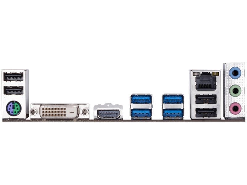 | Interface | 4 x USB 3.1 Gen 1, 1 x PS/2-tastatur/mus, 1 x mikrofon - mini-jack, 4 x USB 2.0, 1 x LAN (Gigabit Ethernet), 1 x DVI-D, 1 x HDMI, 1 x audio linje-ud - mini-jack, 1 x audio linje-ind - mini-jack |