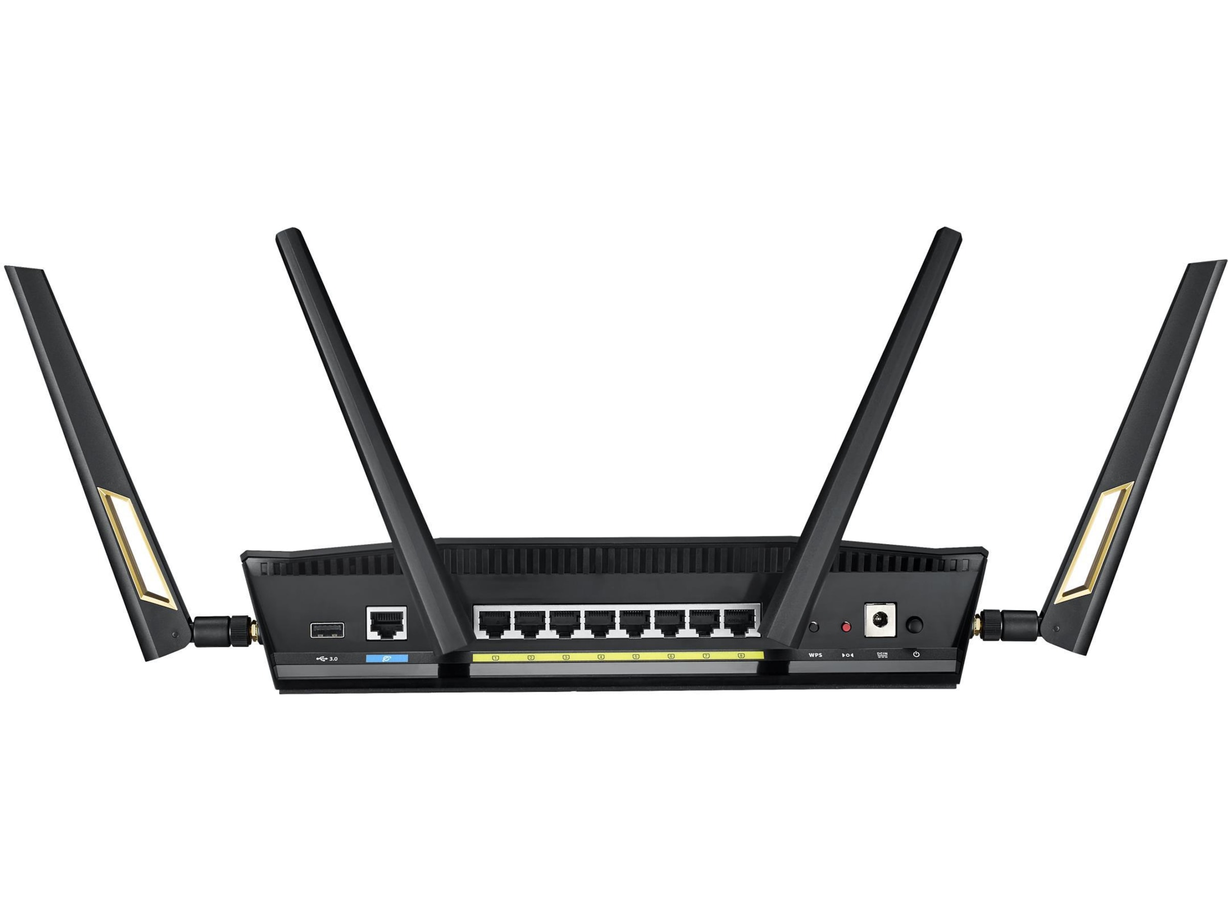 Egenskaber PPTP-klient, Firewallbeskyttelse, Forældrekontrol, Printserver, VPN-klient, RangeBooster teknologi, VPN support, Nulstillingsknap, URL-filtrering, PPTP-gennemløb, LED til/fra-knap, Traffic Analyzer, L2TP-gennemløb, Port triggering, IPSec passthrough, Statisk IP mode, Wi-Fi Protected Setup (WPS), WLAN/WPS-knap, VPN-server, ASUS AiProtection Pro, Stateful Packet Inspection (SPI), Adaptive QoS, Roaming Assist-teknologi, Tilgangspunkt, drift, Port fremsendelse, DoS attack beskyttelse, ASUS AiCloud, 3G/4G USB Dongle Support, L2TP-klien, IPSec server, Link Aggregation, Stråleformeteknologi, Resultat register, PPTP server, MU-MIMO teknologi, DNS proxy, Dual WAN tilslutning, Portfiltrering, NTP-klient, ASUS AiMesh, Trådløs bro tilstand, DMZ-support, ASUS AiDisk