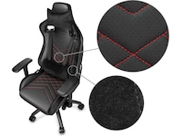 Din nye unikke gamingstol kommer i helt sort perforeret PU syntetisk læder. Stoffet ånder og med detaljer i plys på sidestykkerne er alt klart til ekstra komfort i timevis, selv hvis du tager et lille powernap under LAN og turneringer.