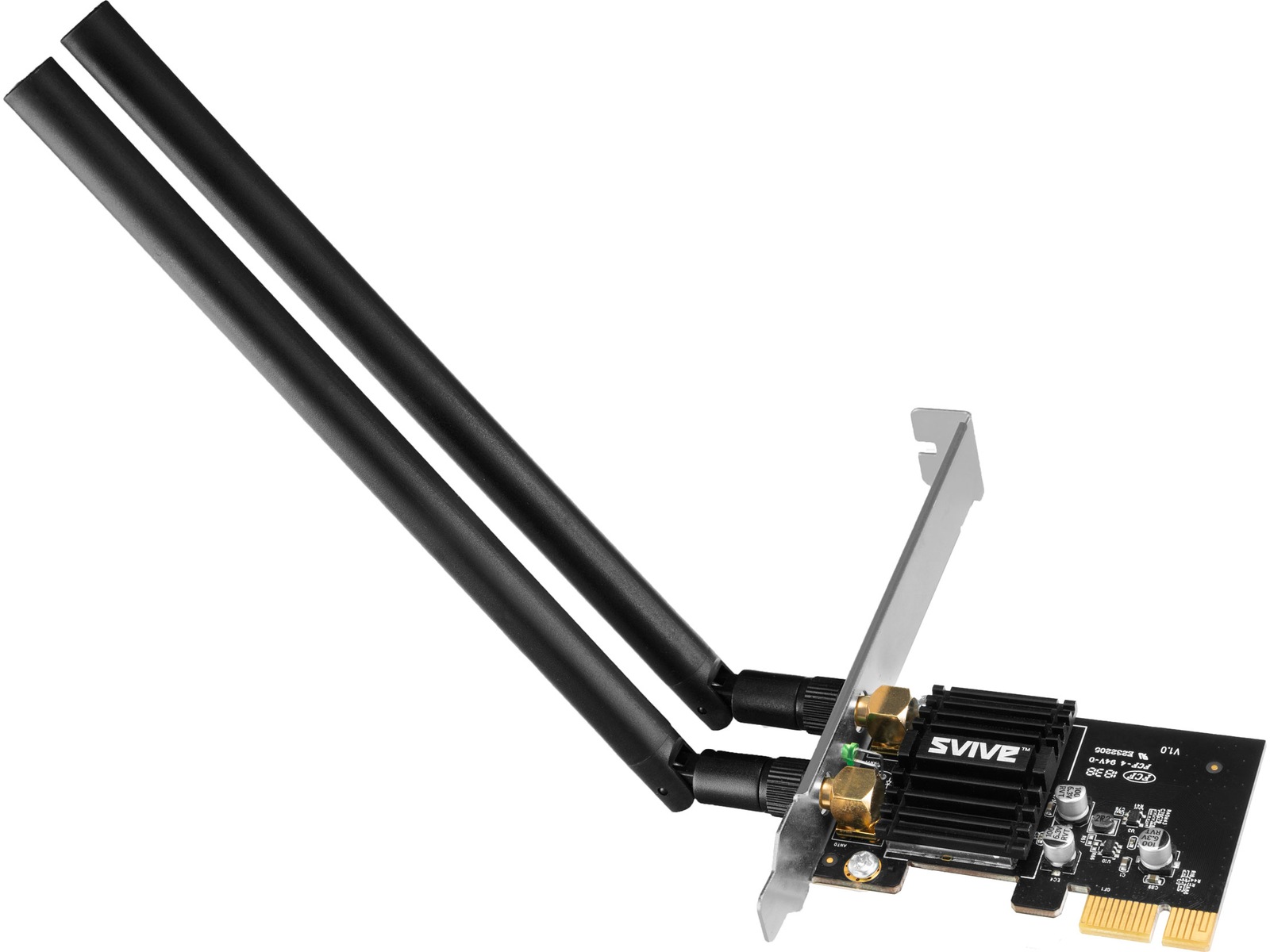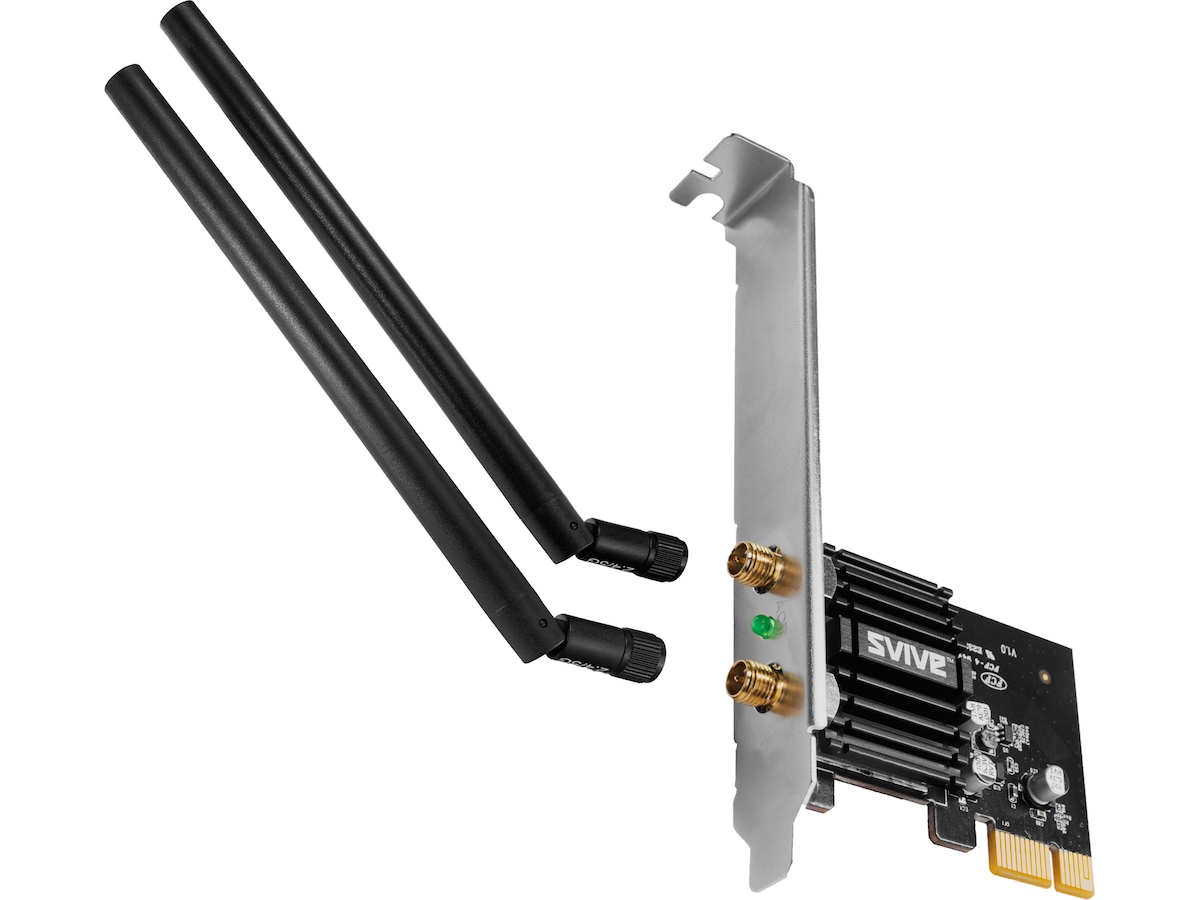 Svive netværkskort er en god mulighed for dig, der ønsker at opgradere dit installerede trådløse netværk på stationær PC. Netværkskort fra Svive har en god pris og er derfor en lav investering i forhold til fordelen med øget hastighed. Netværkskortet er kompatibelt med standarderne IEEE802.11ac og IEEE802.11a/b/g/n, såvel som kortet er kompatibelt med enheder, der har ældre standarder.