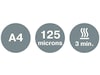 Elegant A4 lamineringsmaskine. Kompakt design med WOW-farver. Kun 3 minutters opvarmningstid. Til 80-125 mikrometer (mikron).