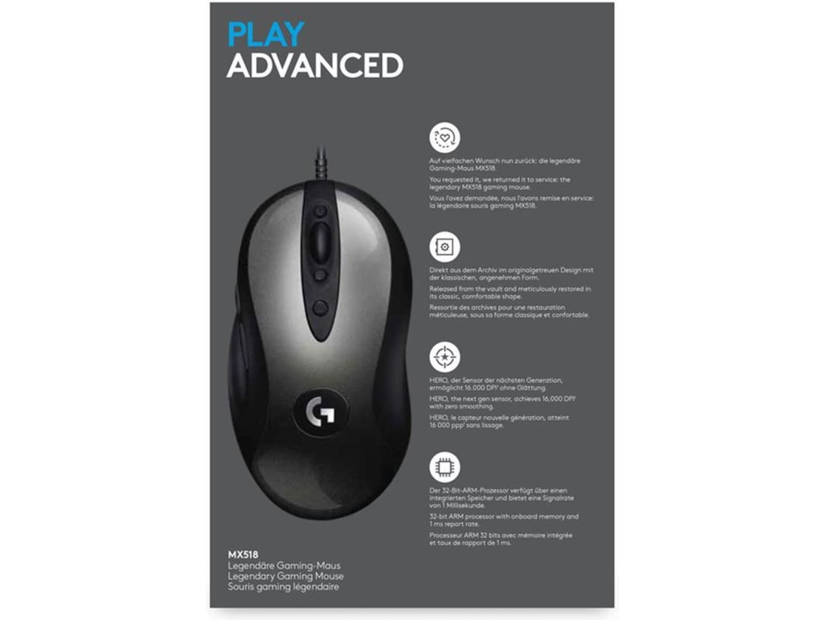 | Præstation | Rapporthastighed: 1000 Hz, 50 millioner klik, 400 ips sporingshastighed, 17.000 billeder per sekund, Realtids sensitivitets-switching 100 - 16.000 dpi, 40 G maksimum acceleration |