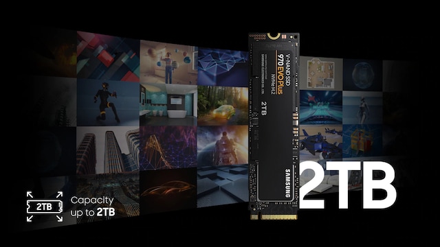 Seneste fremskridt inden for SSD-diske med NVMe. 970 EVO Plus kan rumme op til 2 TB i det kompakte M.2 (2280)-format, hvilket giver mulighed for en betydelig større lagringskapacitet, samtidig med at der spares plads til andre komponenter. Samsungs innovative teknologi sætter dig i stand til at udrette mere på mindre plads.