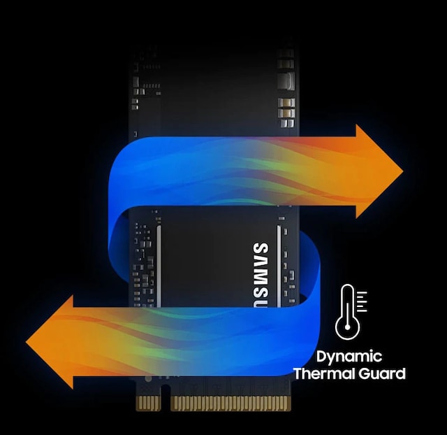 En ny standard for stabilitet i SSD-diske. Samsung har udstyret 970 EVO Plus med sin avancerede nikkelbelagte controller og varmefordeler, der sikrer suveræn varmeafledning. Dynamic Thermal Guard overvåger og opretholder automatisk den optimale driftstemperatur, hvilket minimerer udsving i ydeevnen.