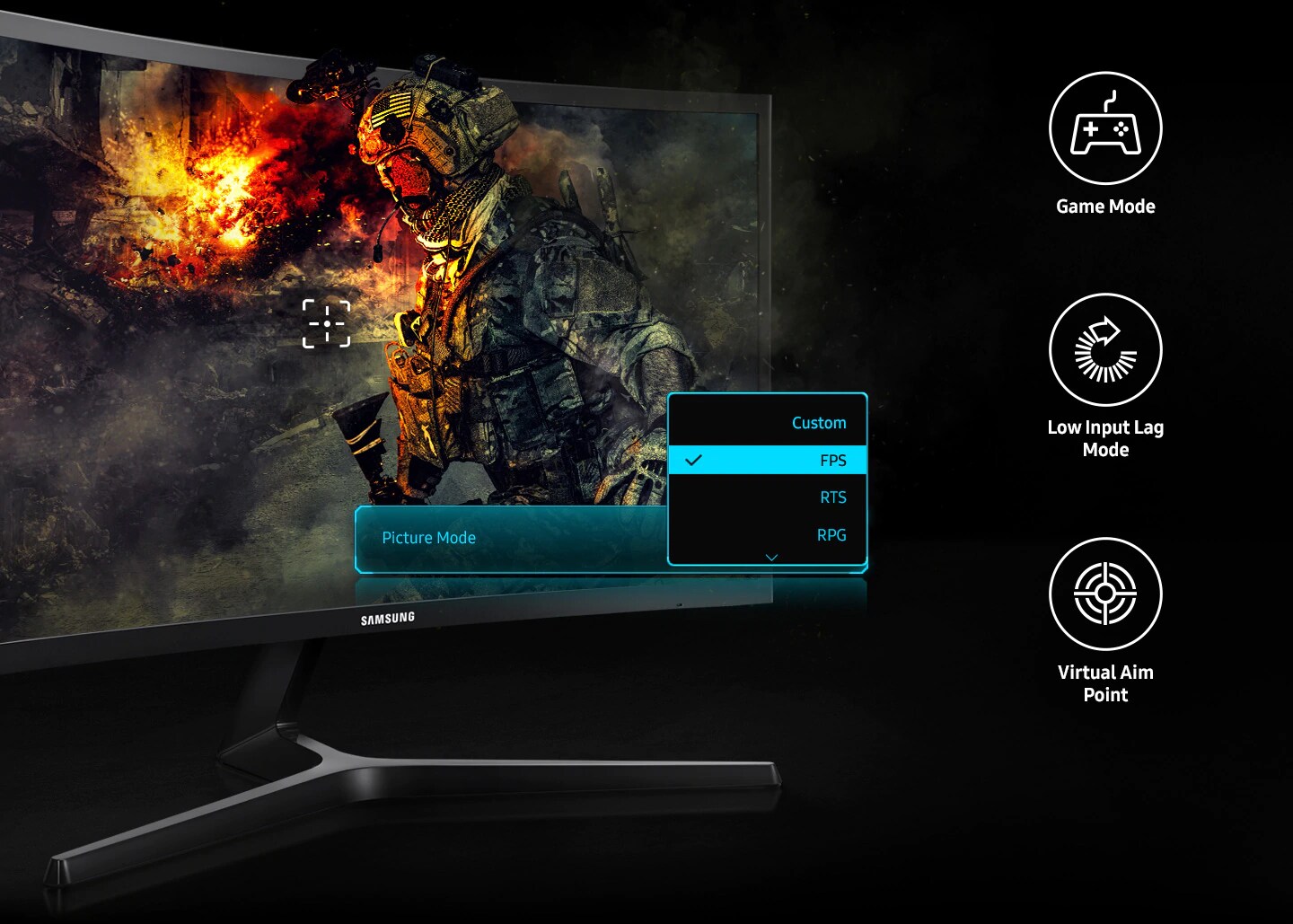 Monitor-egenskaber Flicker Free-teknologi, CustomColor Mode, AOS Mode, Mega Dynamic Contrast Ratio, Low Input Lag, RTS Mode, Super Arena Gaming UX, Custom Key, RPG Mode, Eye Saver Mode, FPS Mode, Black eQualizer, Screen Size Optimizer, Cinema Mode