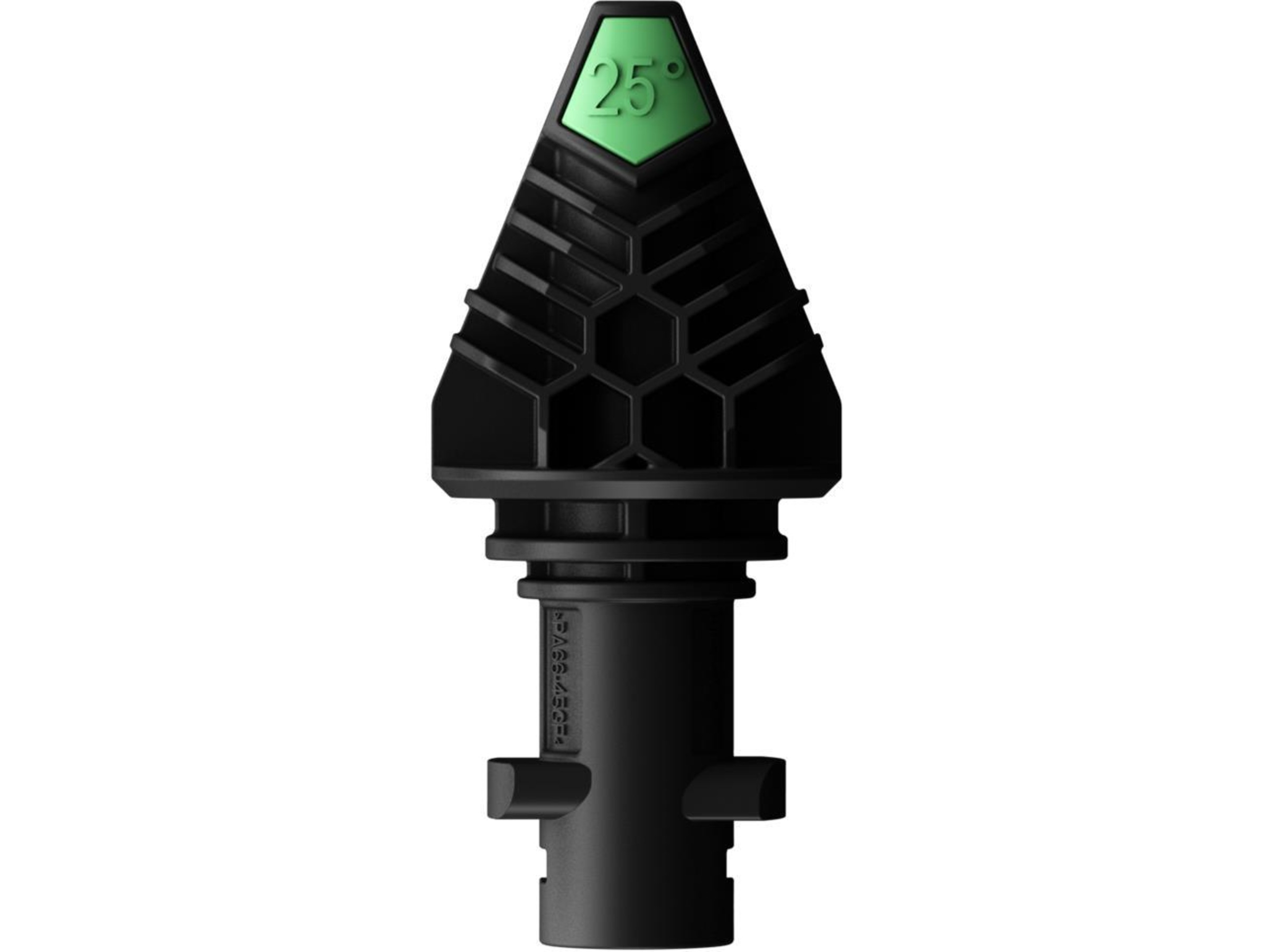 Ved at flytte dysen tættere på bliver det nemmere at komme af med fastsiddende snavs, og ved at øge afstanden giver du overfladen en mere skånsom behandling. Dysen er optimeret, så vandet spredes i en jævn spray.