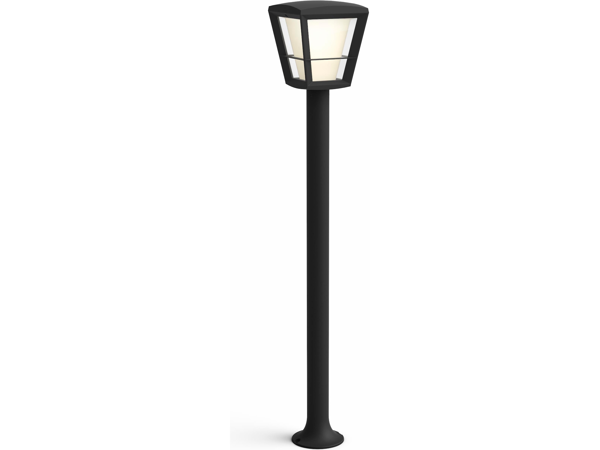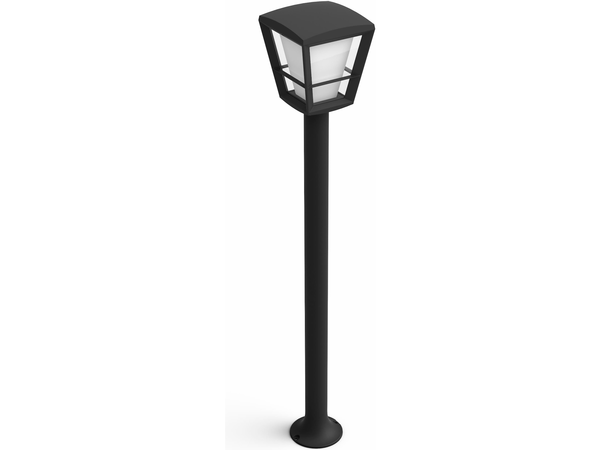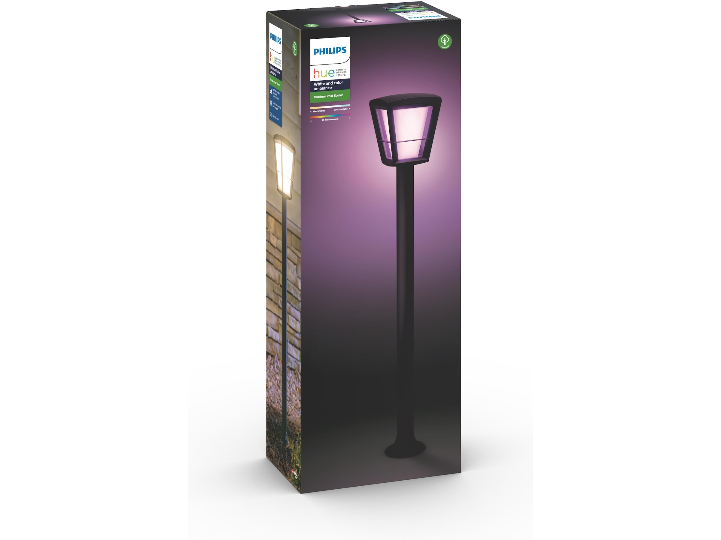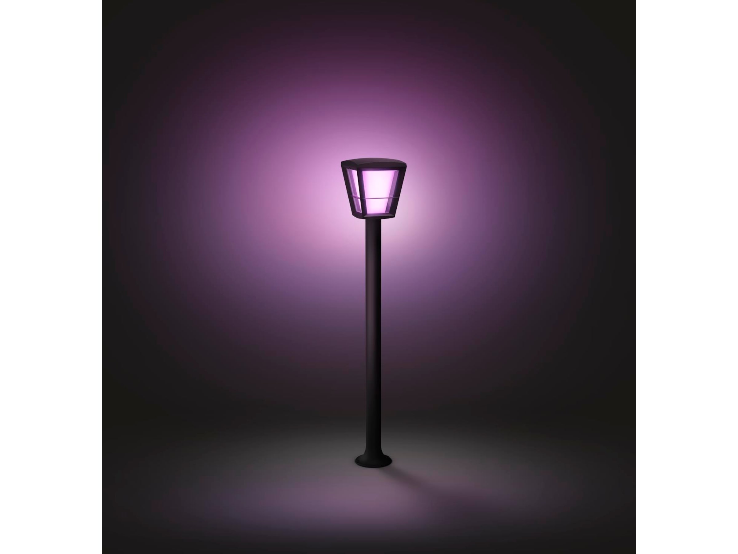 Philips Hue Econic er en familie af moderne udendørslamper. Med sit unikke design lyser denne lampe 360 grader og oplyser dit udendørsrum med et smukt og farverigt lys.