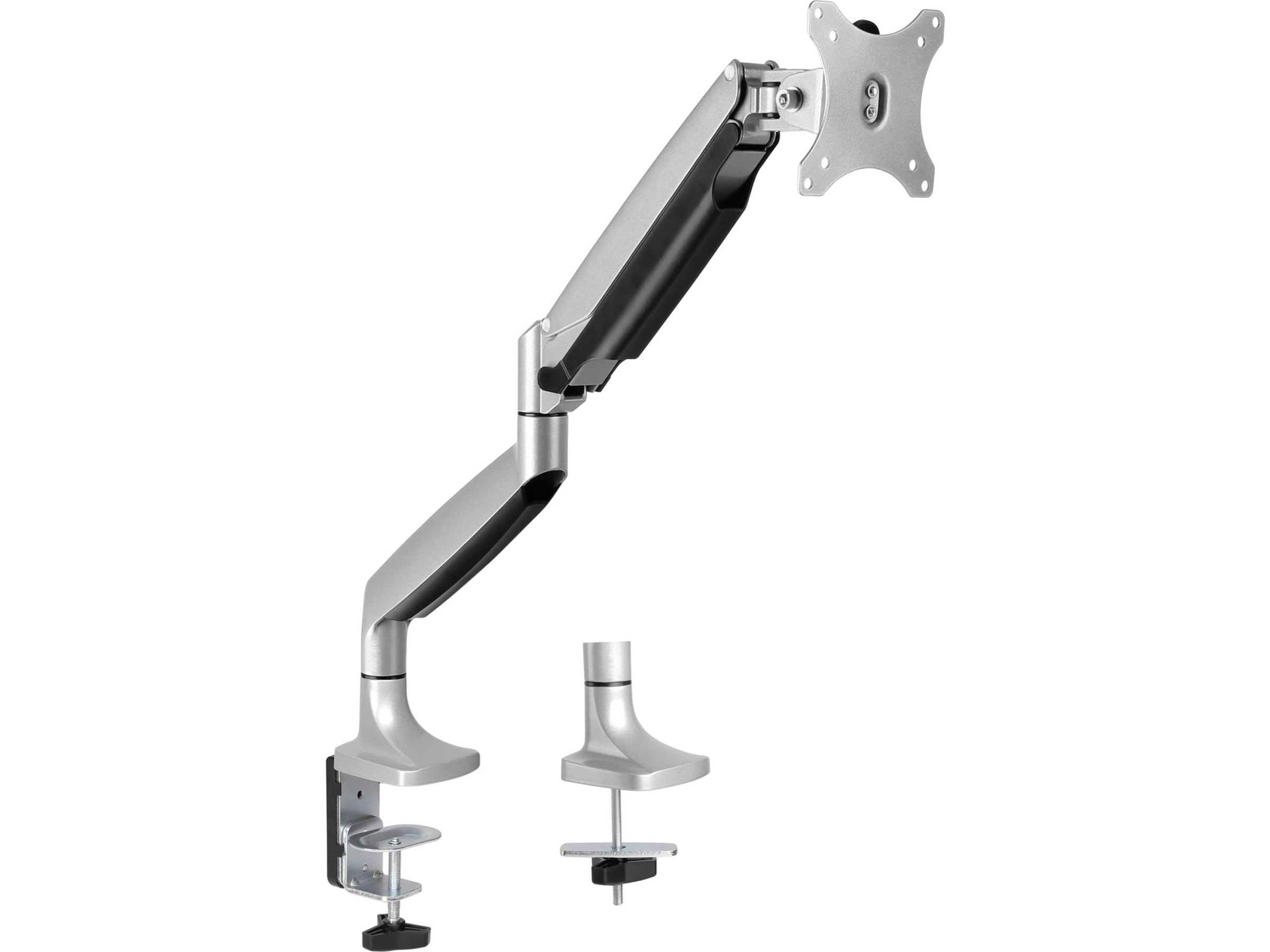 iiglo Mantis er en elegant skærmarm i aluminium med gasfjeder. Det giver dig mulighed for at montere din skærm og nemt placere den i en ergonomisk position. Den hjælper dig også med at frigøre værdifuld plads på dit kontorbord. Kabelstyringen gør det let at holde dit arbejdsområde frit for rod og maksimere din produktivitet. Den aftagelige 75/100mm VESA-plade giver mulighed for en nem installation af de fleste skærme i størrelser mellem 13 og 34".