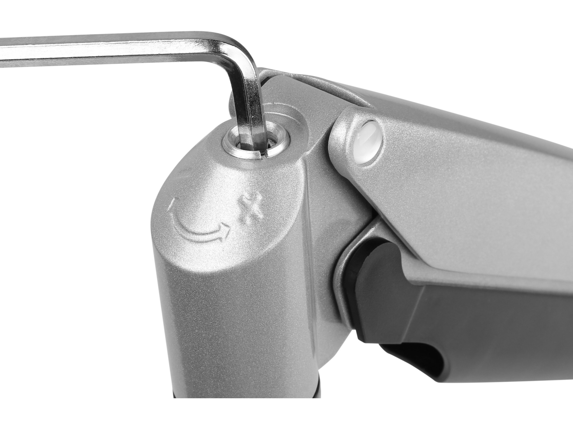 iiglo Mantis har en gasfjeder, der lader dig placere dine skærme præcist i den ønskede højde, hældning og drejning. Du kan også trække den tættere på dig eller skubbe den tilbage. Beslaget kan holde en vægt på op til 9 kg, mens den hjælper dig med at opretholde en ergonomisk kropsposition, mens du arbejder.