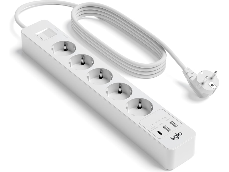iiglo 1,5m Overspændingsbeskyttelse med 5 stikkontakter