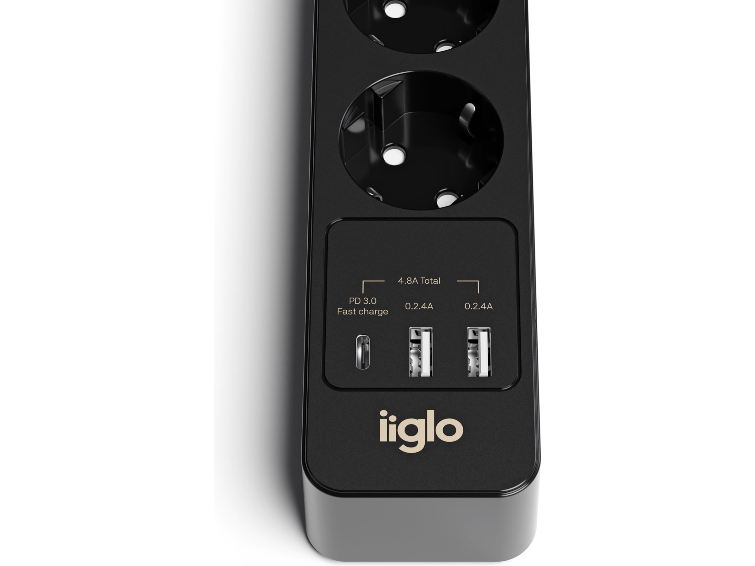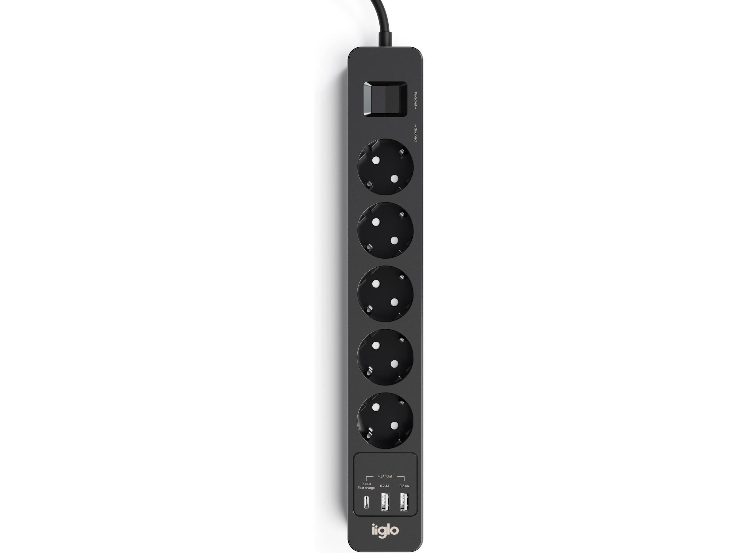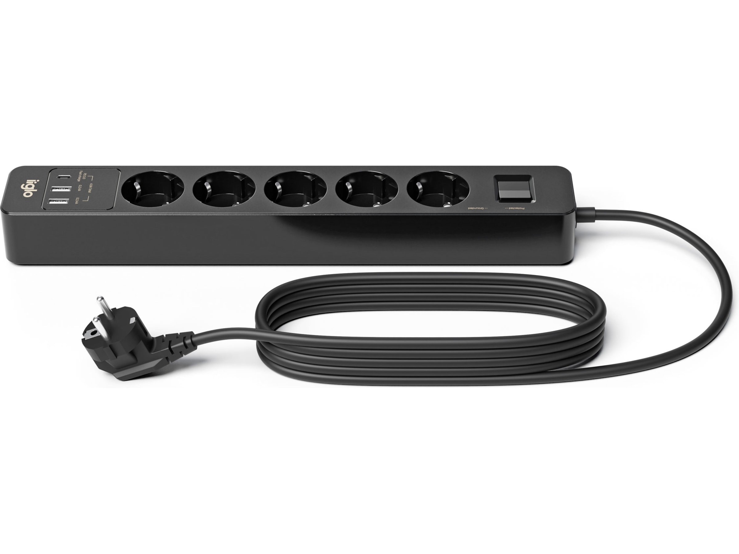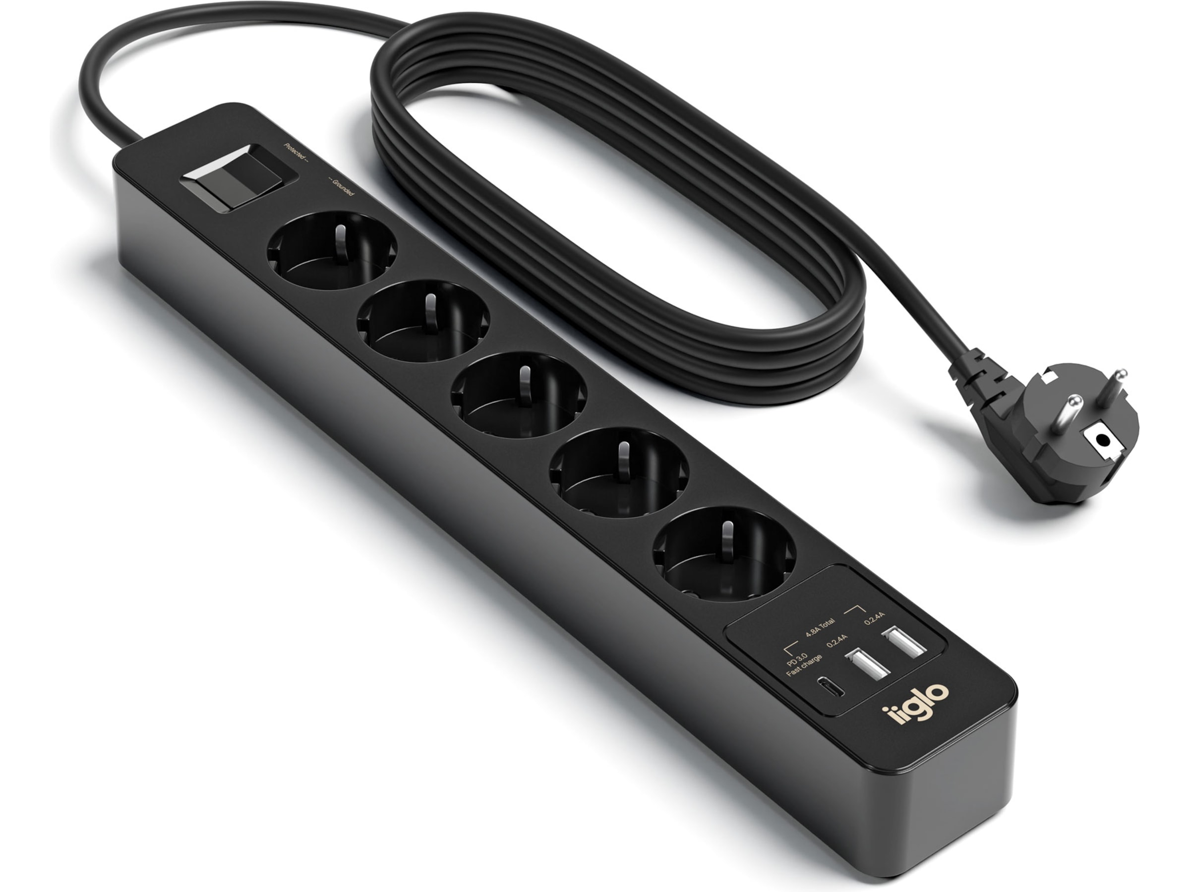 iiglo 1,5m Overspændingsbeskyttelse med 5 stikkontakter