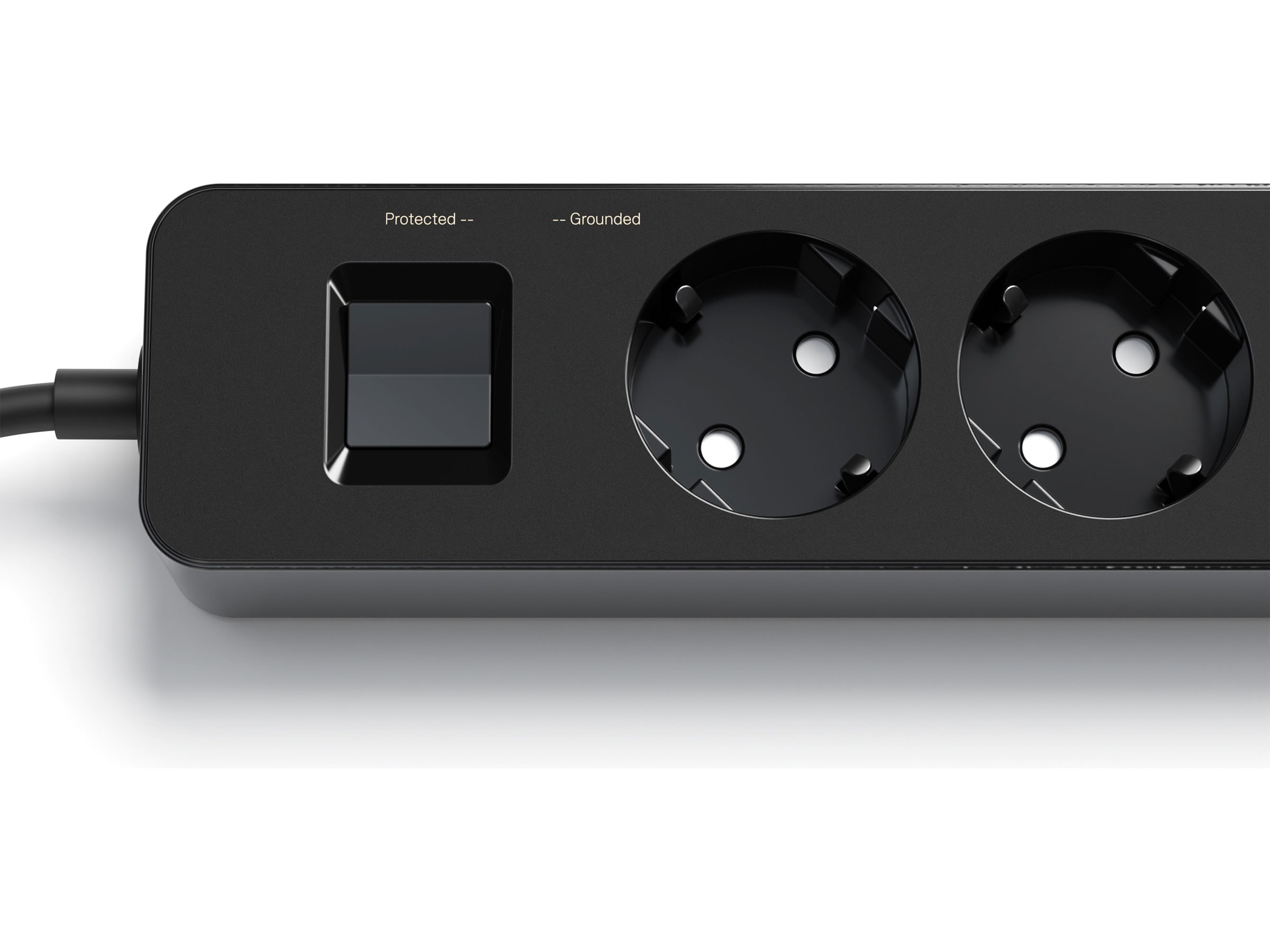 Strømpladen er udstyret med to ekstra USB-A porter, hver med en 2,4 A-udgang.