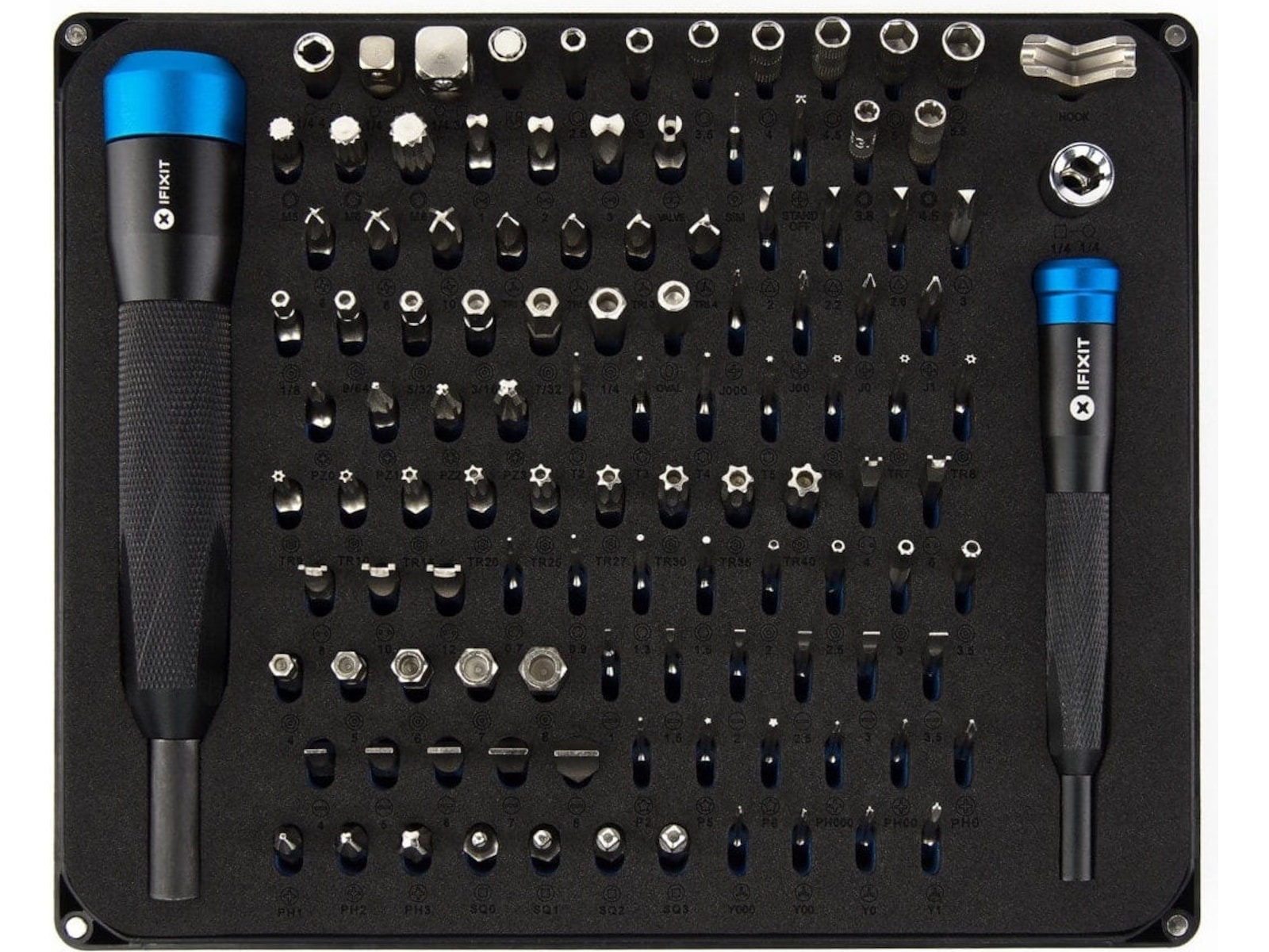 Sættet indeholder vores bredeste sortiment af bits, komplet med ethvert tænkeligt hoved, du kan få brug for til alle reparationer eller gør-det-selv projekter. Det omfatter standard bits som Phillips og Flathead i en bred vifte af størrelser til at håndtere alt fra reparation af præcisionselektronik til dine gør-det-selv projekter derhjemme. Og det ville ikke være et iFixit bitsæt, hvis det ikke omfattede alle de eksotiske bits fra Pentalober til reparation af iPhone og MacBook og Gamebits til dine vintage Nintendo-konsoller.