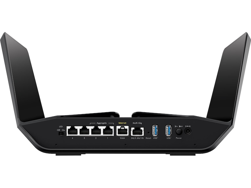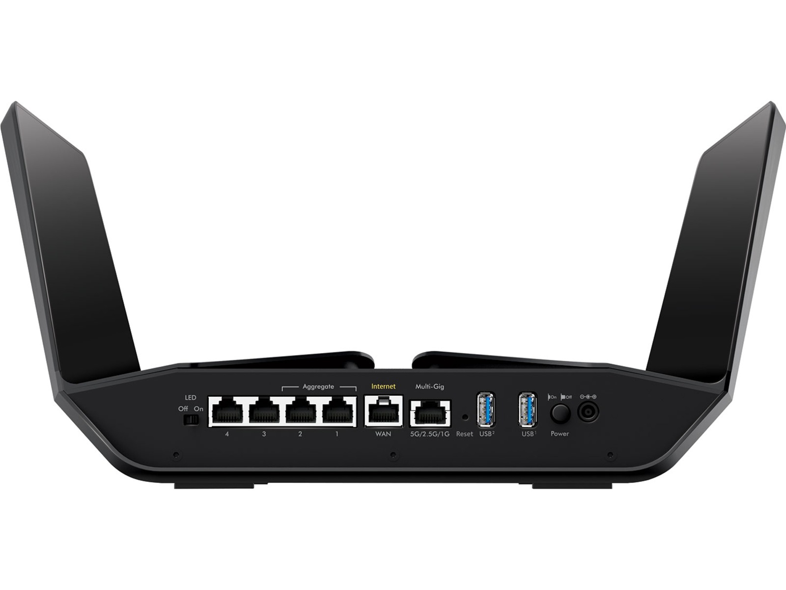 Let your devices run at their highest speed over existing wiring. The multi-gigabit Ethernet port on AX12 gives you five times faster speeds than the wired speed of a typical Gigabit port. Your network attached storage (NAS) devices, switches, and other devices capable of 2.5Gbps and 5Gbps speeds can now operate at full capacity. Use the four gigabit Ethernet LAN ports to connect more wired devices for faster file transfer and uninterrupted connections. Combine two gigabit Ethernet ports to further improve the aggregated file transfer speed. The Nighthawk AX12 is NETGEAR's first home router offering Multi-Gig speeds with 5G/2.5G/1G Multi-Gig Ethernet LAN port.