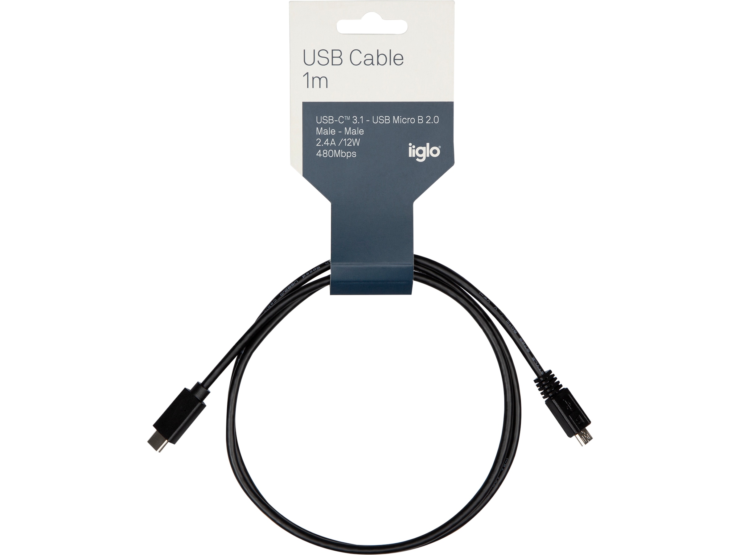 USB C til USB mikro-B-kabel til opladning og overførsel af data.