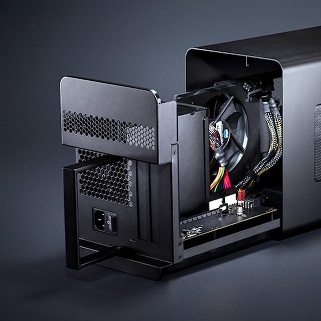 Razer Core X-serien har en perfekt størrelse, så den passer til din opsætning, og har ekstra køling og åbne ventilationsåbninger i aluminiumskabinettet for optimeret termisk ydeevne.