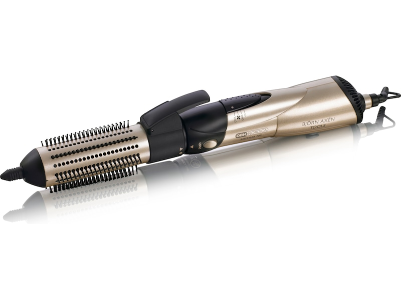 - 3 udskiftelige tilbehørsdele: 2 rundbørster og 1 hårbørste. 22 mm rundbørste til små krøller og 38 mm rundbørste til volumen og store krøller.