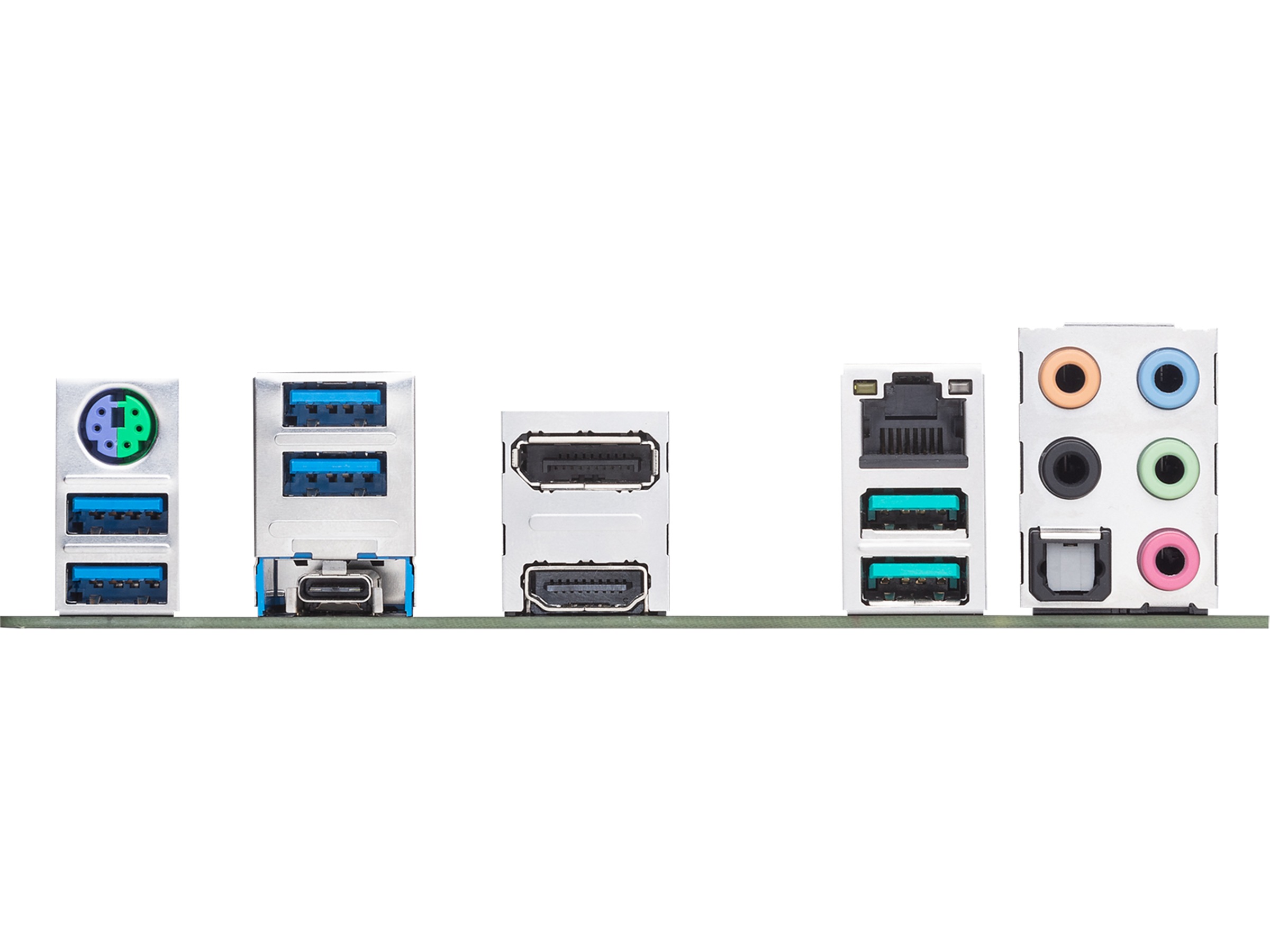 | Interface | 4 x USB 3.2 Gen 1, 1 x HDMI, 1 x audio linje-ud (centrum/subwoofer) - mini-jack, 1 x audio linje-ind - mini-jack, 1 x USB-C Gen2, 1 x audio linje-ud (bagtil) - mini-jack, 1 x TOSLINK, 1 x PS/2-tastatur/mus, 1 x DisplayPort, 2 x USB 3.2 Gen 2, 1 x mikrofon - mini-jack, 1 x LAN (Gigabit Ethernet), 1 x audio linje-ud - mini-jack |