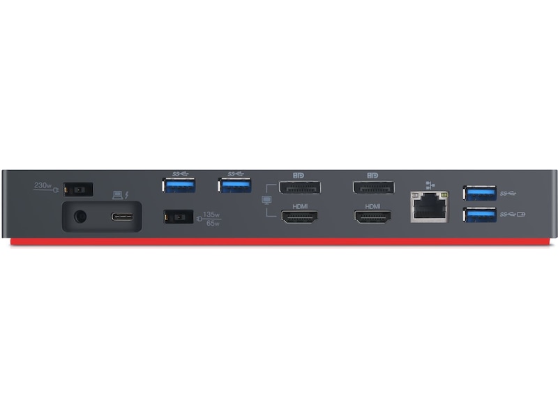 | Interface | 4 x USB 3.1 Gen 2 - 9 pin USB Type A, 1 x lyd - hovedtelefoner/mikrofon - minitelefon 3,5 mm 4-pæl, 2 x audio / video - HDMI - 19 pin HDMI Type A, 1 x USB 3.1 Gen 2 med Always-on opladning - 9 pin USB Type A, 1 x netværk - 10Base-T/100Base-TX/1000Base-T - RJ-45, 1 x USB-C / Thunderbolt 3 - 24 pin USB-C, 2 x audio / video - DisplayPort - 20 pin DisplayPort |