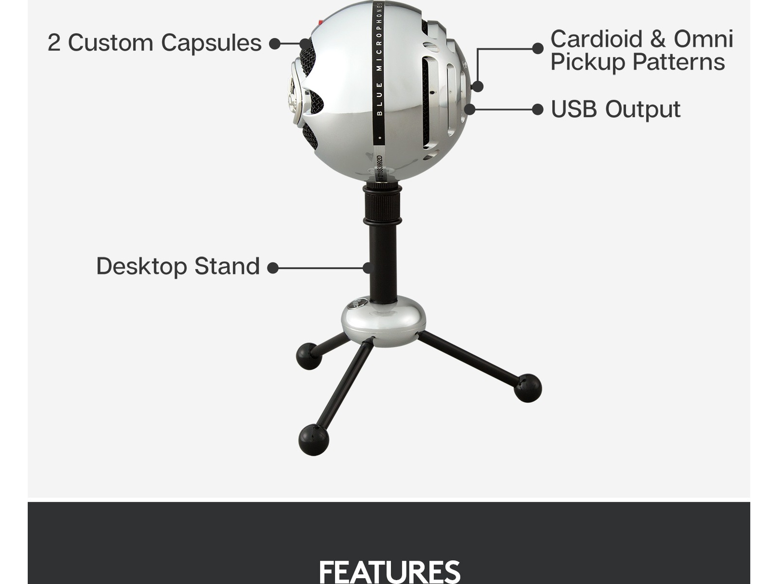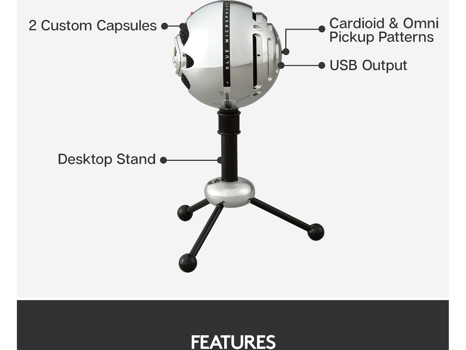 Snowball USB-mikrofoner bringer den samme Blue arv, der styrer verdens bedste elite-studioer og kunstnere til din hjemmeopsætning, så du nemt kan opnå lyd i studiekvalitet på dit skrivebord. Snowball iCE er udstyret med en enkelt kondensorkapsel til gengivelse af stemmer i høj kvalitet.. Snowball anvender et unikt dual-capsule design for at sikre en rig og detaljeret lyd til ethvert projekt.