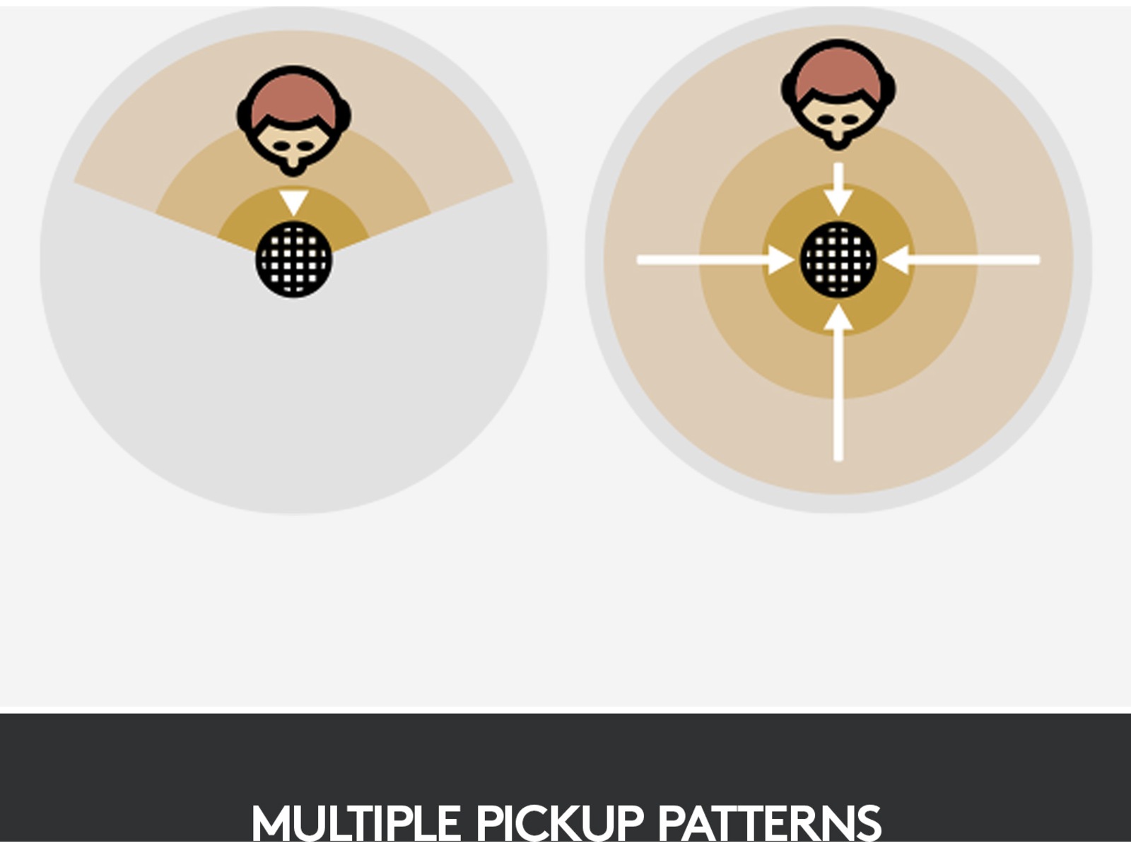 - Cardioid omni og cardioid med pad-pickup indstillinger