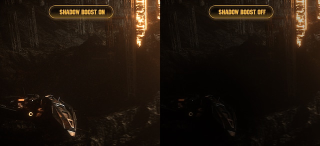 ASUS Shadow Boost-teknologi præciserer mørke områder af spillet uden at overeksponere lysere områder, hvilket forbedrer den samlede visning, samtidig med det gør det lettere at få øje på fjender skjult i mørke områder på kortet.