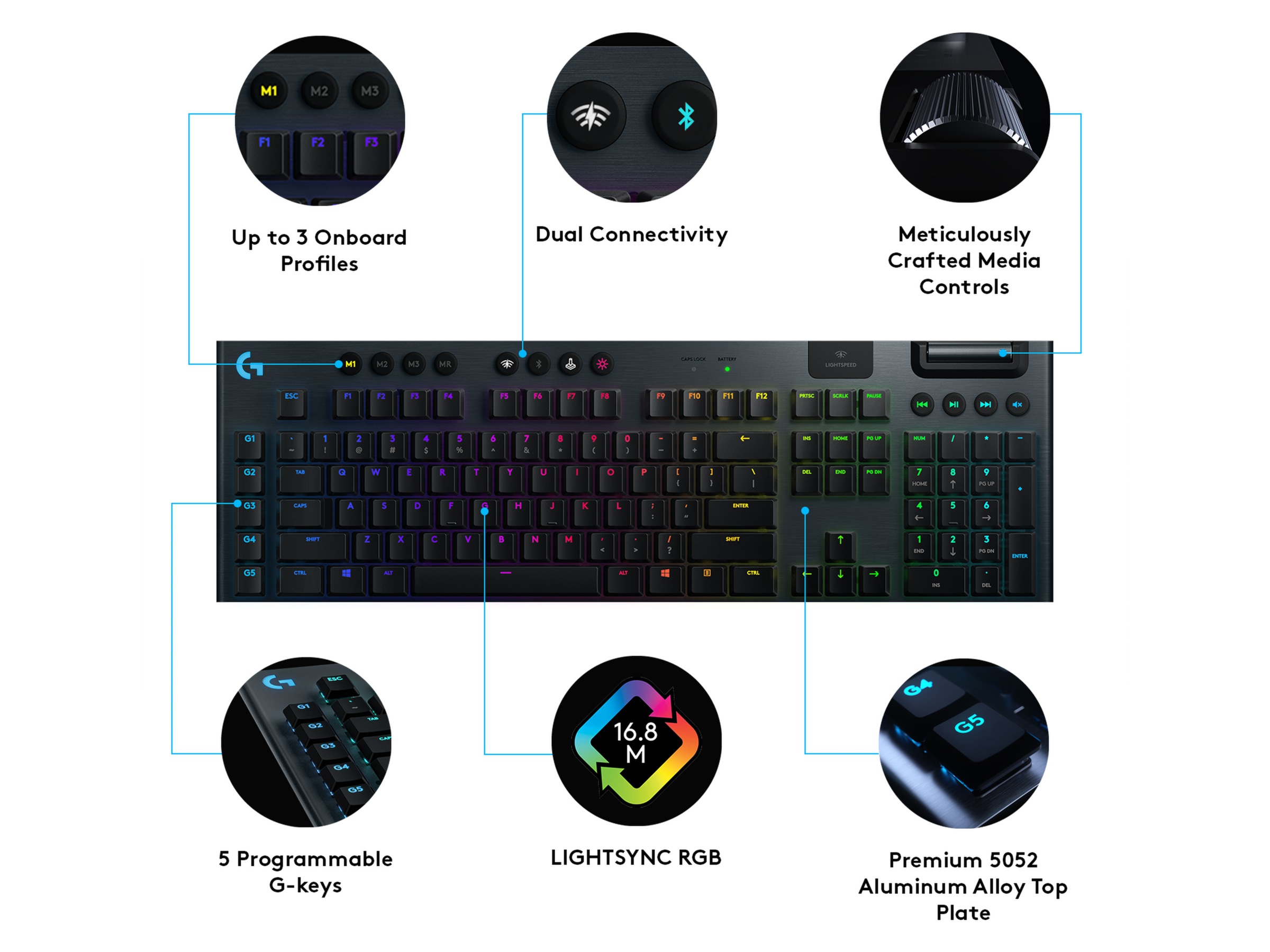 Smukt udformet, G915 bruger aircraft-grade aluminiumslegering til at levere et utroligt tyndt, men stærkt og slidstærk design.