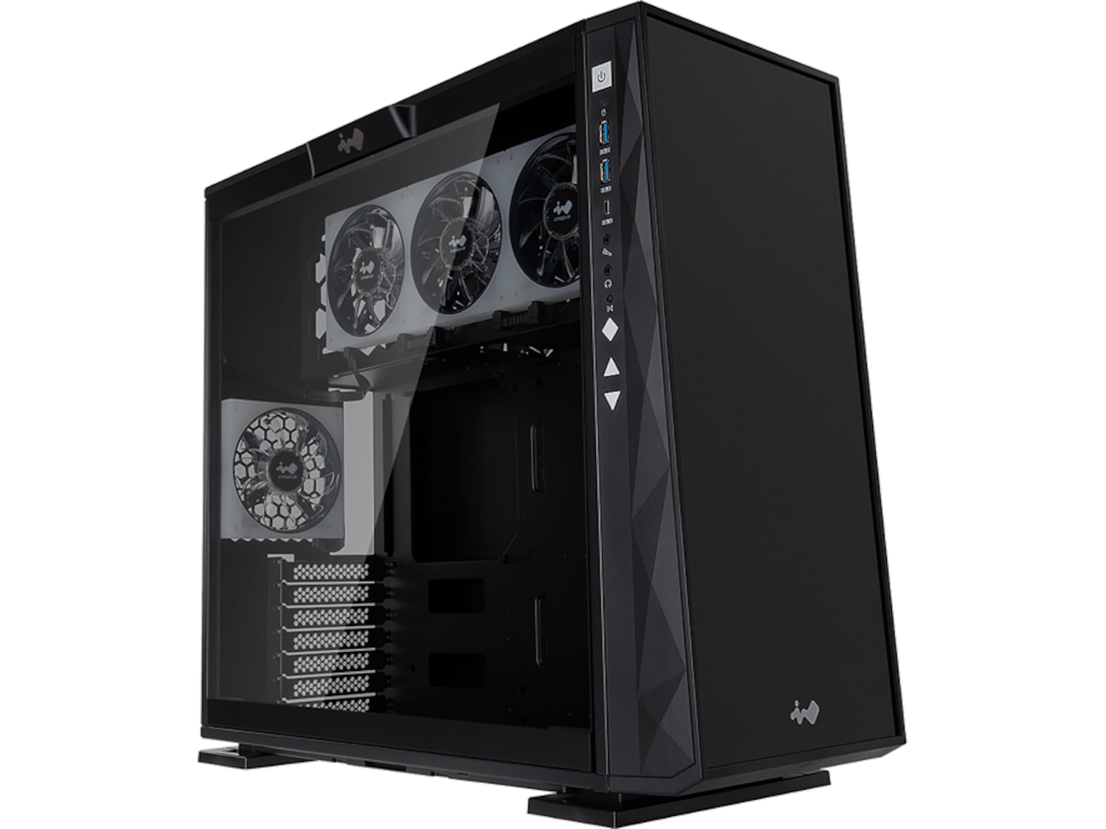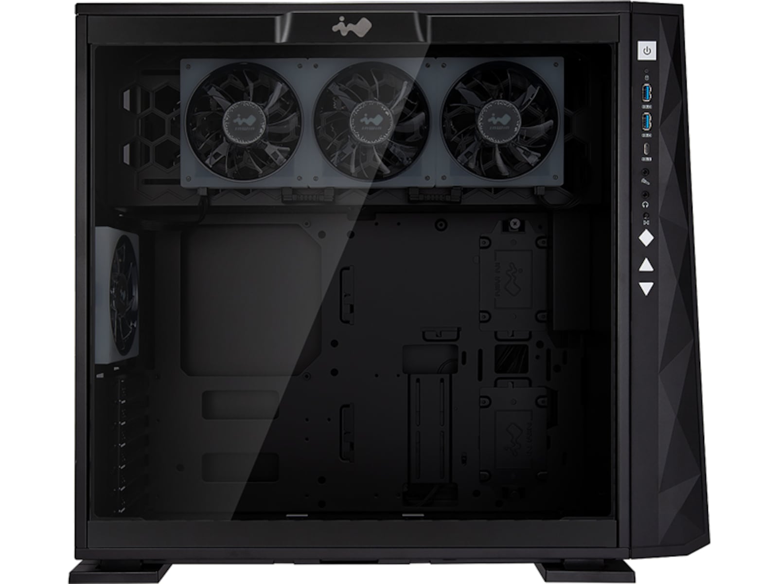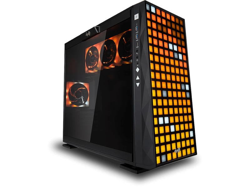Egenskaber, systemkabinet Understøtter 360 mm radiator i bundpanel, Understøtter 360 mm radiator i toppen, Hærdet glas venstre panel, Understøtter 120 mm radiator bagtil