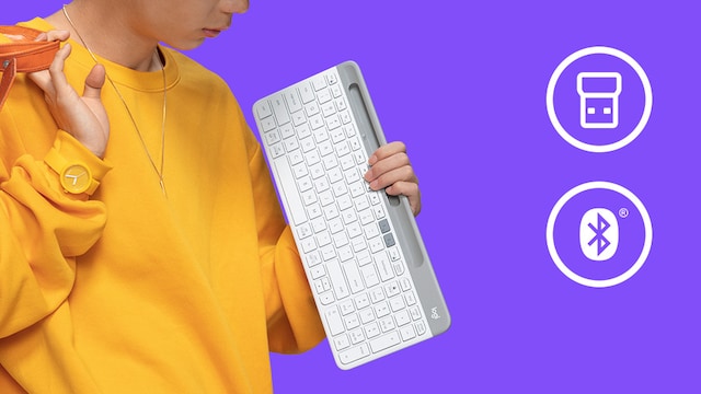 Et computertastatur som du også kan bruge til din smartphone og tablet. Takket være Easy Switch™-tasterne kan du tilslutte ét tastatur til to enheder samtidigt og skifte mellem dem med et enkelt tryk.