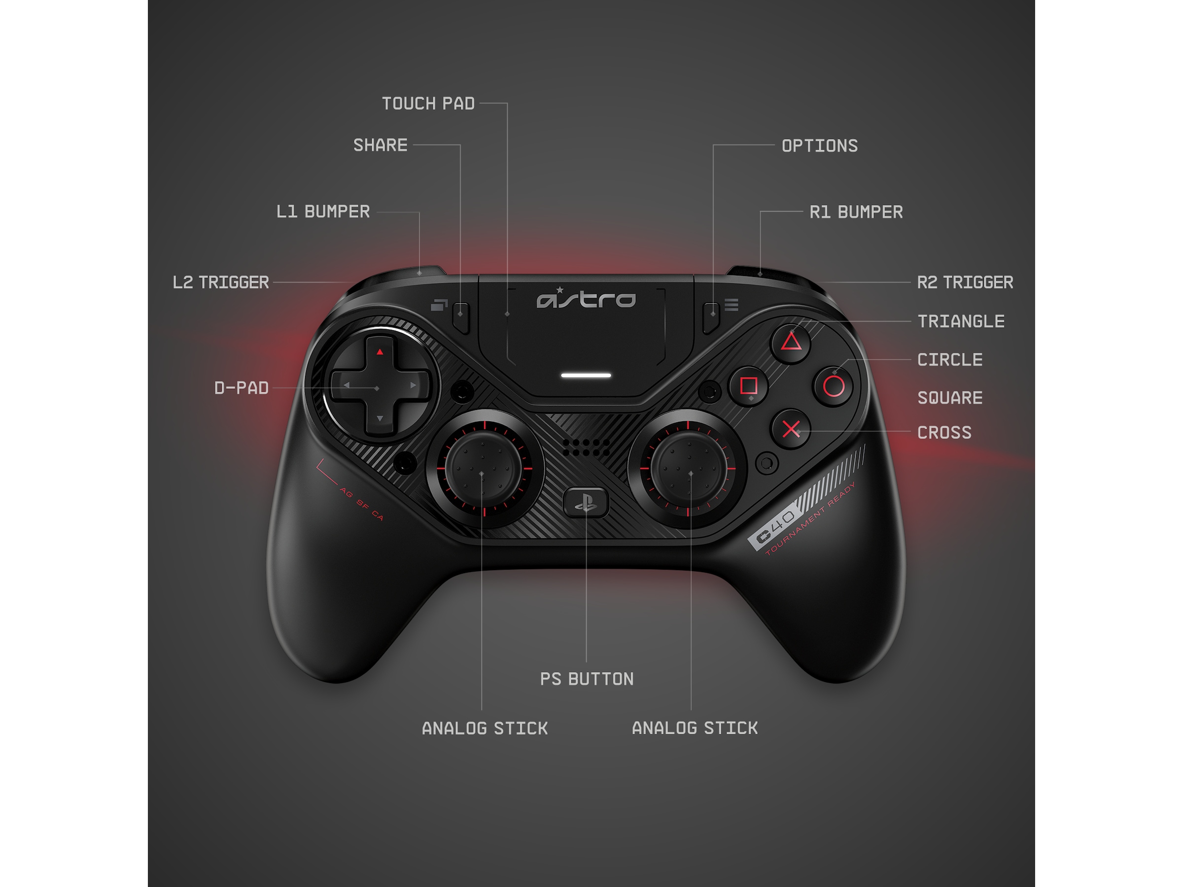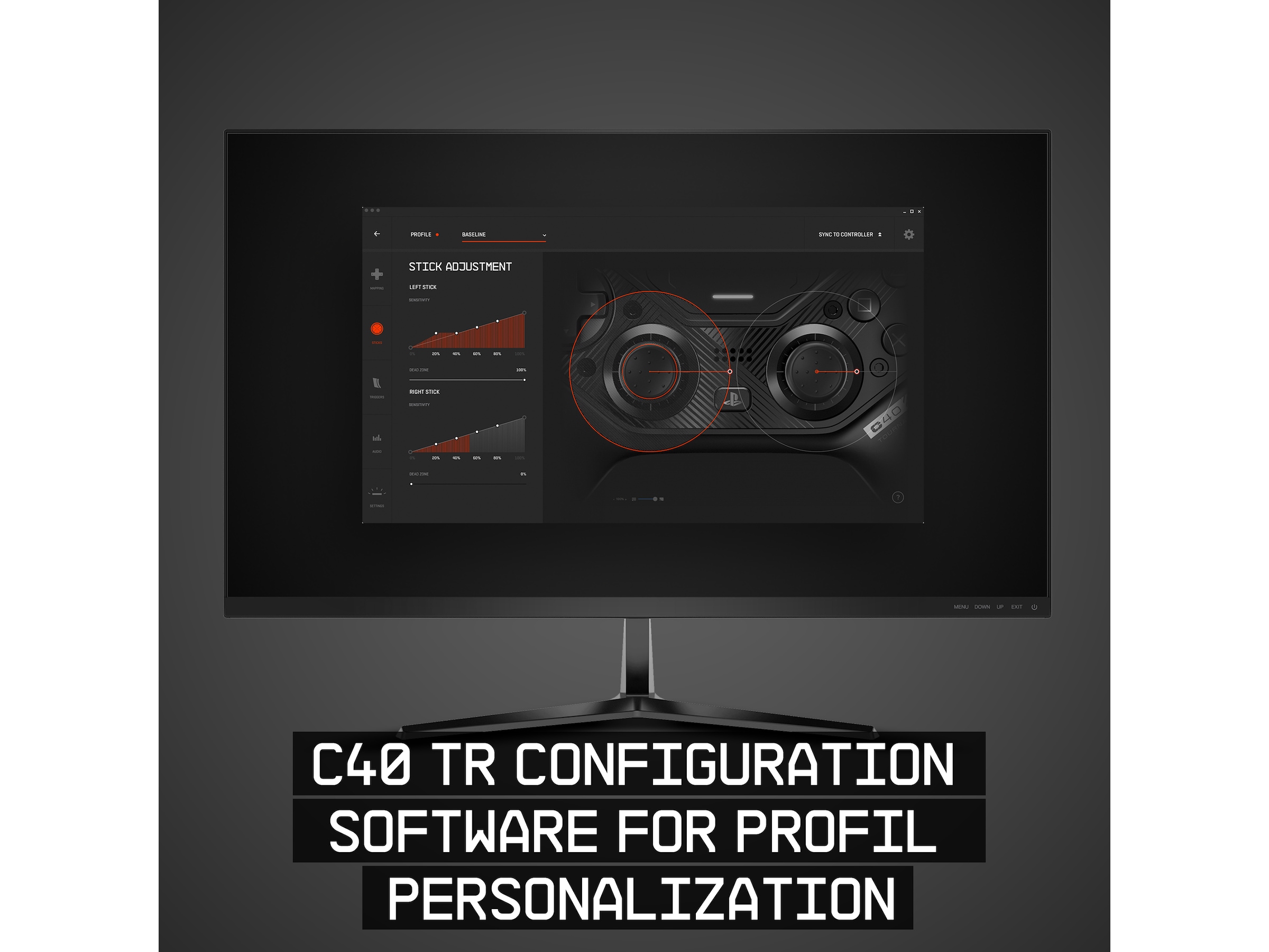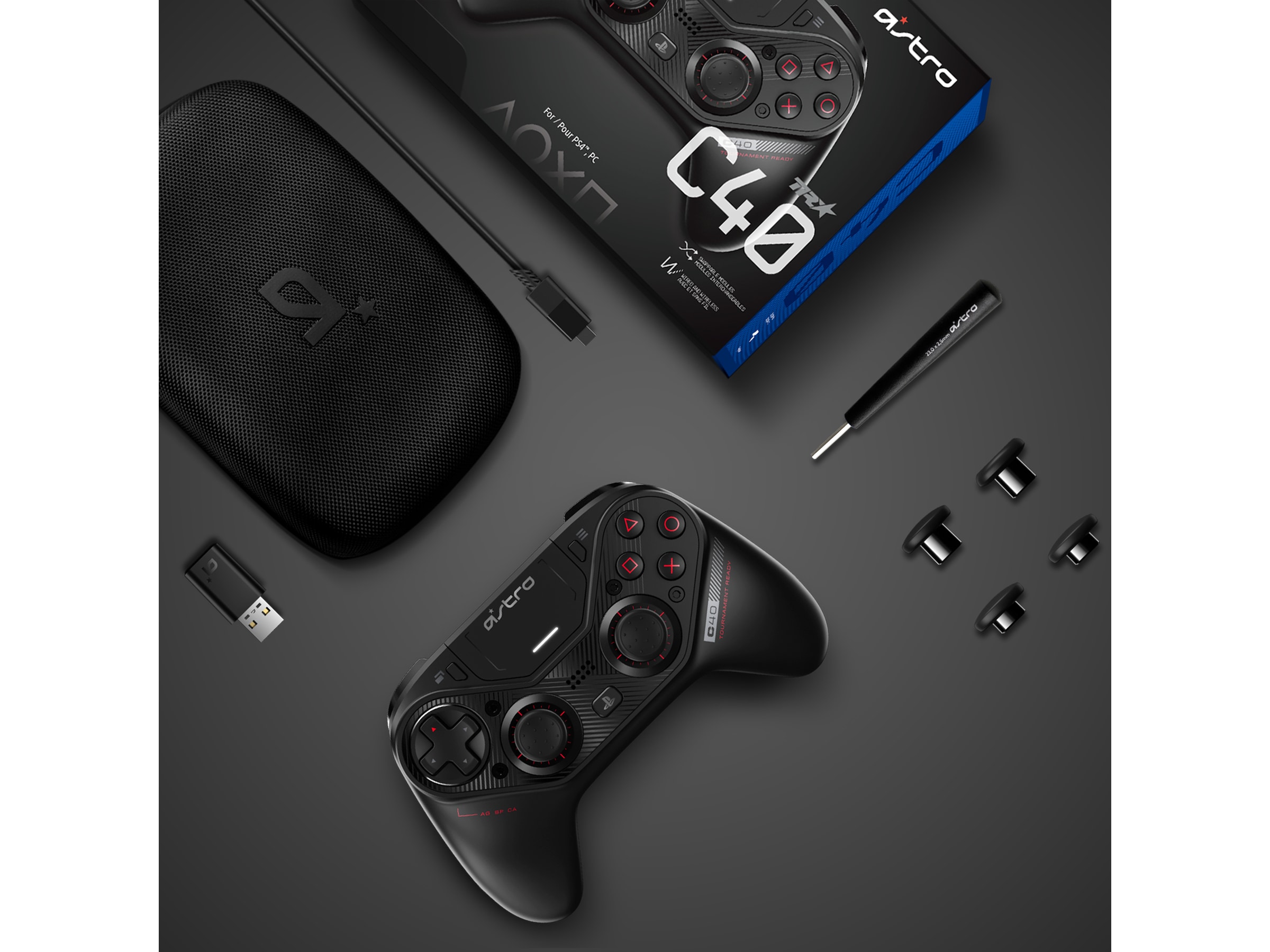 | Inkluderet tilbehør | USB-kabel (2 m), Konkav hætte i høj højde, Kuplet hætte i høj højde, Trådløs gamepad-modtager, 2 kuplede hætter i standard højde, C40 TR-værktøj |