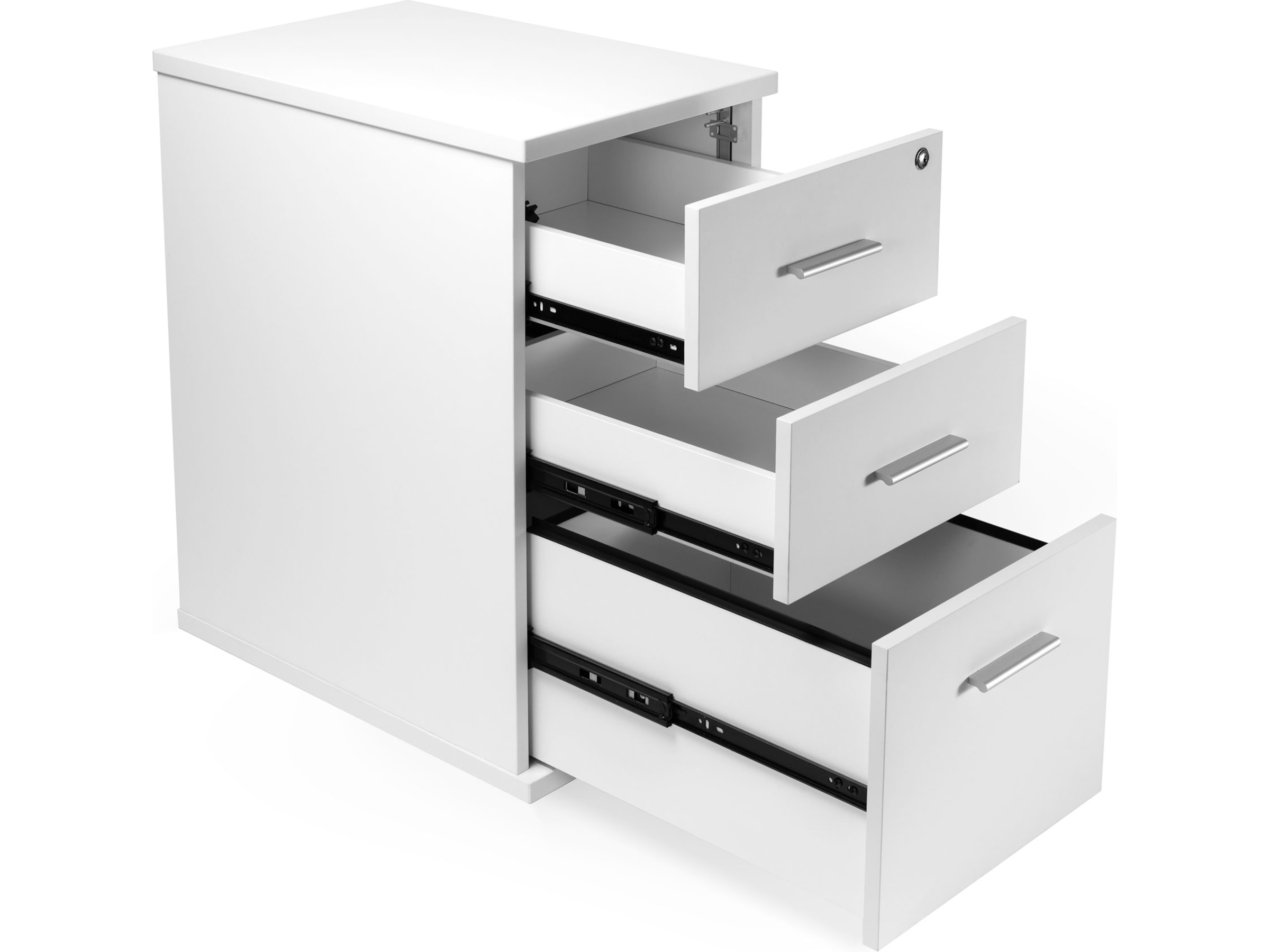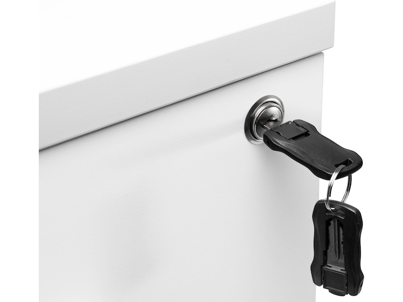 iiglo skuffesektion findes i hvidlakeret metal med tre skuffer og giver dig mulighed for at låse den øverste skuffe. Skuffesektionen passer perfekt som en forlængelse af Apoc-skrivebordet.