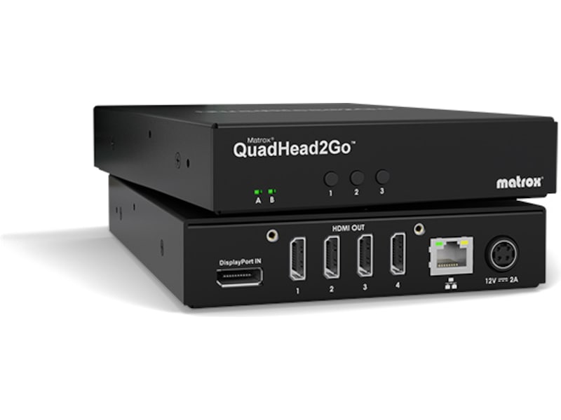Kør fire skærme fra ét signal. System-uafhængig er Matrox® QuadHead2Go™-seriens multi-monitor controller designet til at drive enhver videovægkonfiguration af enhver mulig dimension, fra enhver videokilde – og den leverer pålidelig, fejlfri billedkvalitet på tværs af ekspansive videovægskærme. Knapper på enheden og forudindstillede konfigurationer sikrer en klar, problemfri installationsoplevelse. TAA-kompatibel SKU tilgængelig.