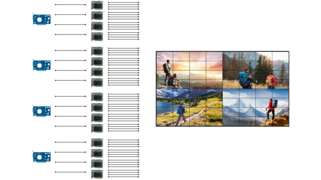 - Opret en videovæg fra enhver indholdskilde – professionelle grafikkort og integrerede GPU'er, videovæg-controllere, digitale signage-afspillere, medieafspillere, dekodere, bærbare computere, NUC'er, set-top-bokse, spillekonsoller og mere.