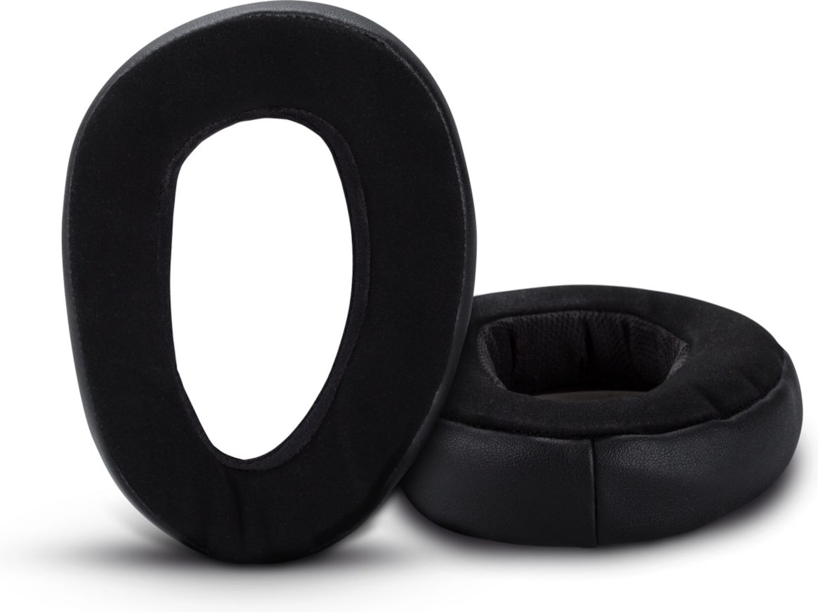 Udskiftningsørepuder, der er fremstillet af tykt hukommelsesskum med kunstlæder på ydersiden og et ruskindslignende materiale på den del, der er i berøring med øret.