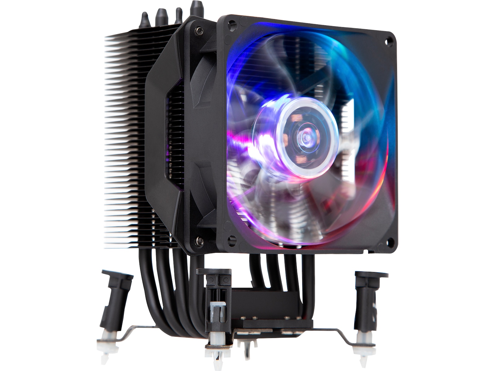 Cooler Masters år med håndværksfremstillede aluminiumsfinner er uden sidestykke. Optimeret finne-stabel-afstand mellem hvert lag er baseret på strenge luftstrømstest på vores laboratorier. Resultatet er, selv i en kompakt størrelse, at hver køleplade med 92 mm blæser er i stand til at opretholde ydeevnen i en kompakt build.
