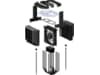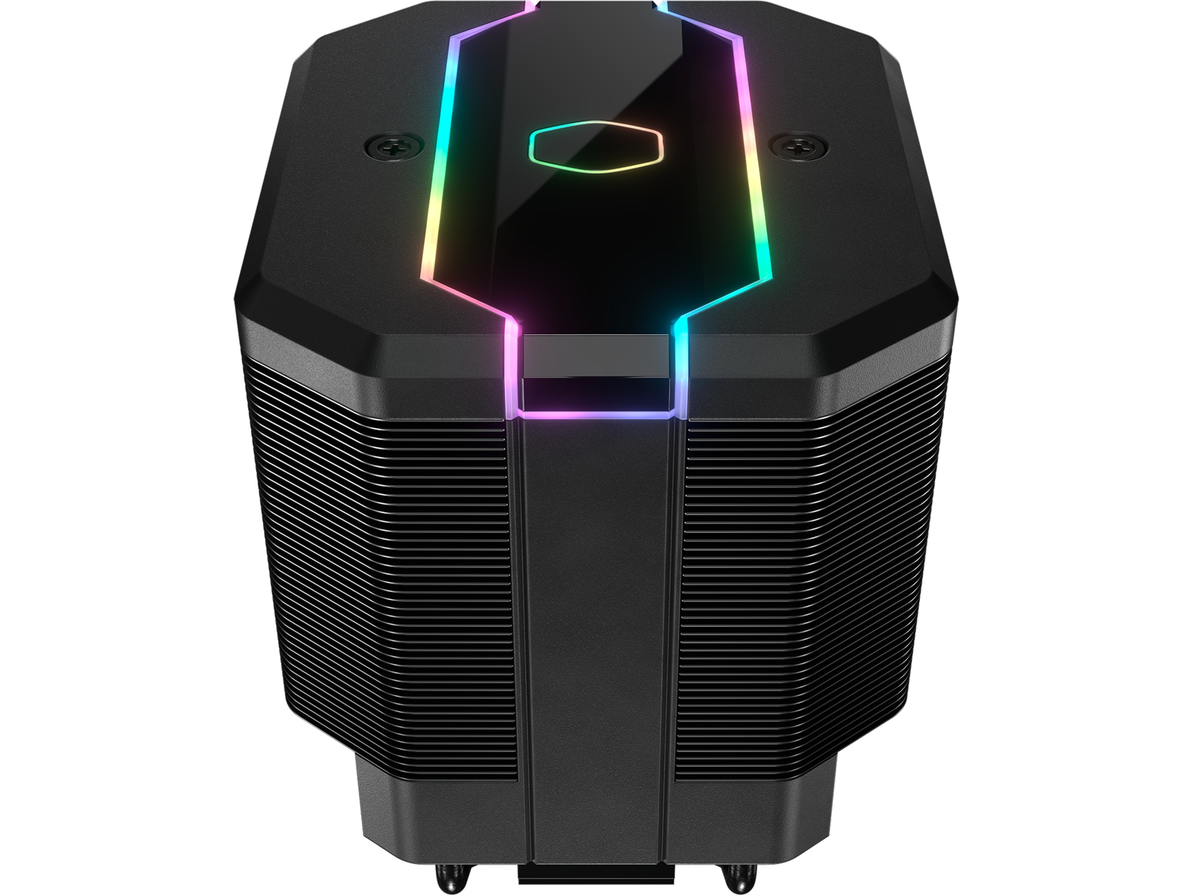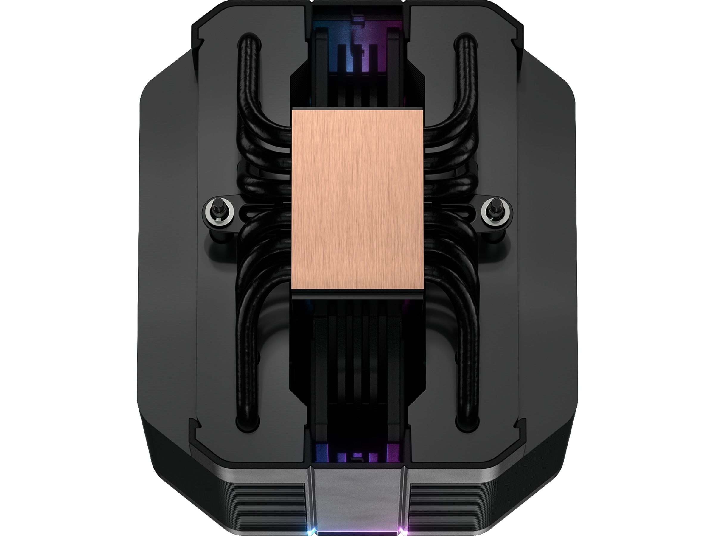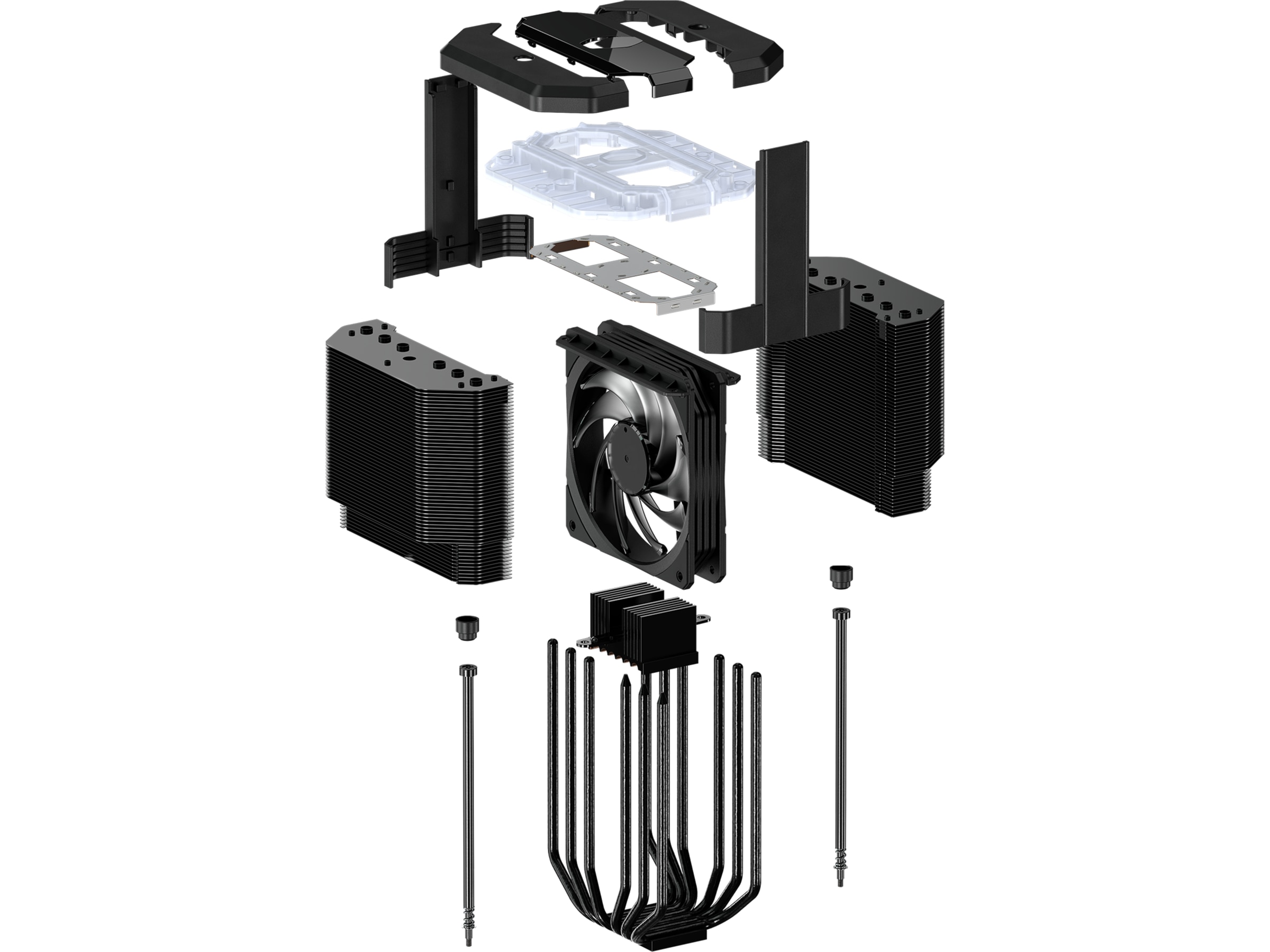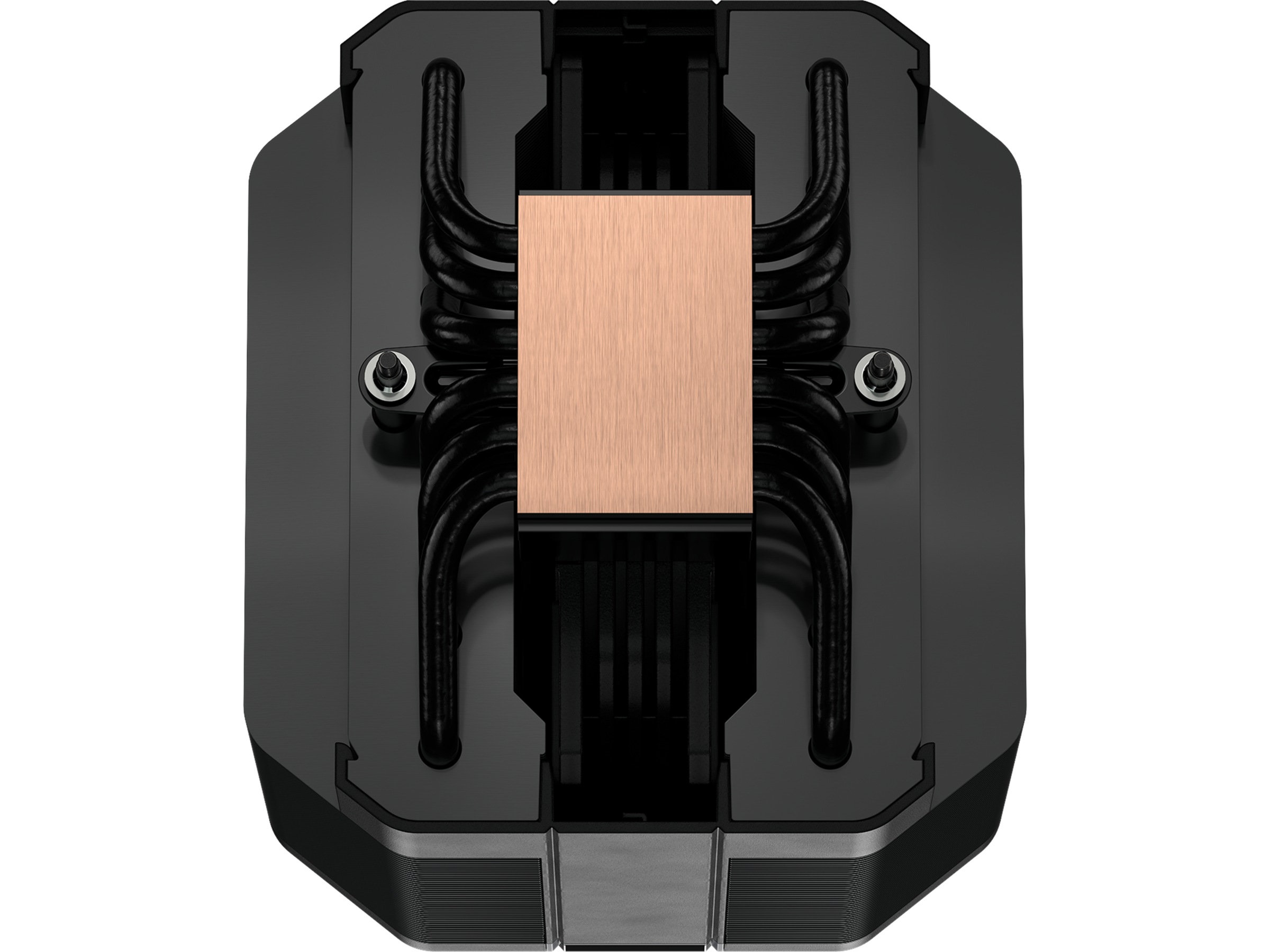 En kombination af 2 sæt heatsinks giver større og mere udspredt overflade. Den sorte maling forbedrer strålingskølingsevnen